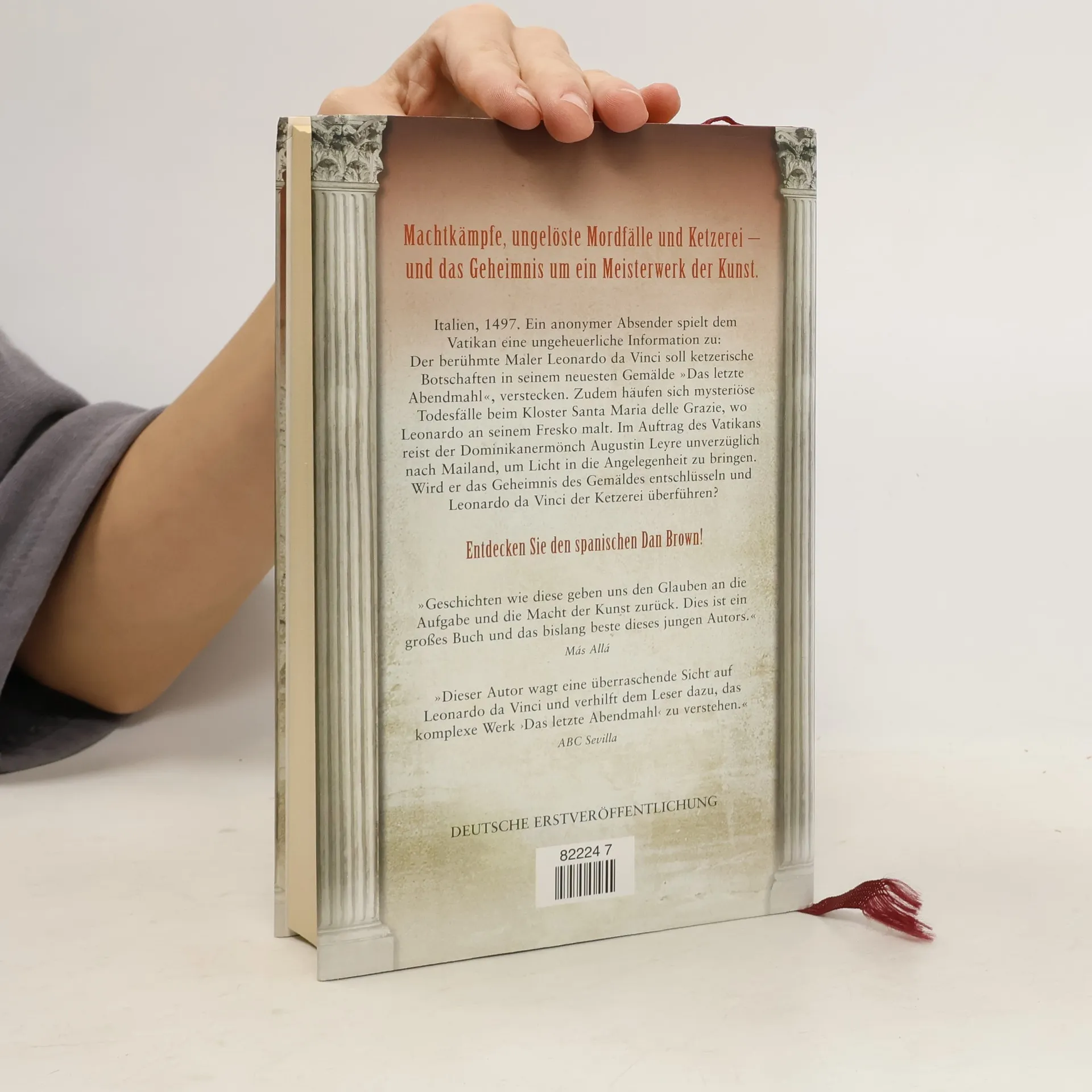 Unter Verdacht: Leonardo da Vinci. Ein Ketzer? Verschlüsselte Botschaften im 'Letzten Abendmahl'? Mailand, 1497. Trauer am Hof des Herzogs Ludovico Sforza - die blutjunge Herzogin Beatrice ist unerklärlicherweise an den Folgen einer Frühgeburt gestorben. In Rom erfährt der dominikanische Inquisitor Augustin Leyre als einer der Ersten davon. Das unchristliche Treiben des Herzogpaares missfällt ihm schon länger. Kurz darauf lässt ihm ein anonymer Absender eine ungeheuerliche Information zukommen: Leonardo da Vinci, erklärter Günstling der Herzogs, soll in seinem neuesten Gemälde 'Das letzte Abendmahl' ketzerische Botschaften verstecken. Zudem häufen sich mysteriöse Todesfälle um das Kloster Santa Maria delle Grazie, in dem Leonardo an seinem Fresko malt. Unverzüglich bricht Leyre nach Mailand auf, um Licht in die dubiose Angelegenheit zu bringen. Kann er die geheimen Botschaften des Gemäldes entschlüsseln und Leonardo tatsächlich der Ketzerei überführen?