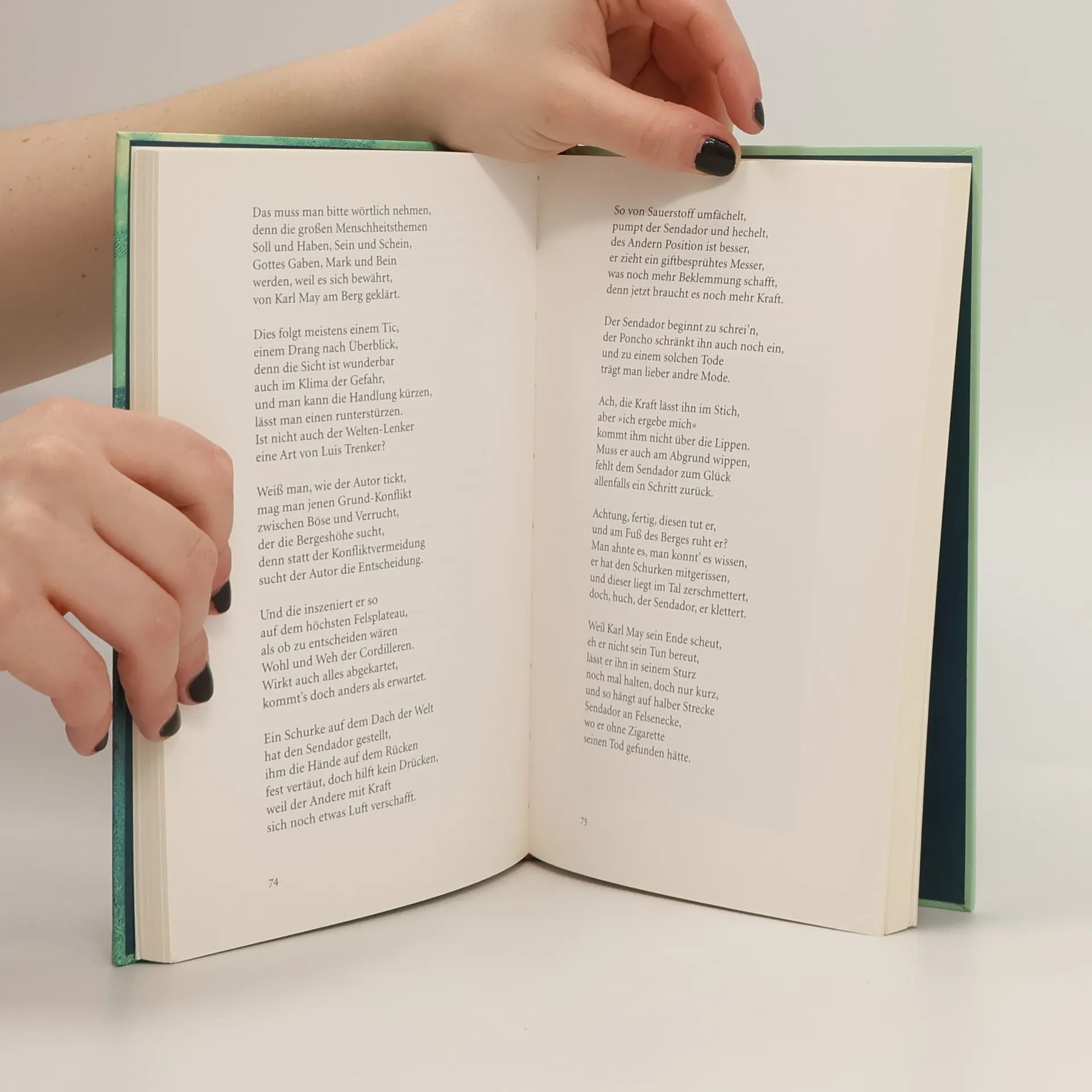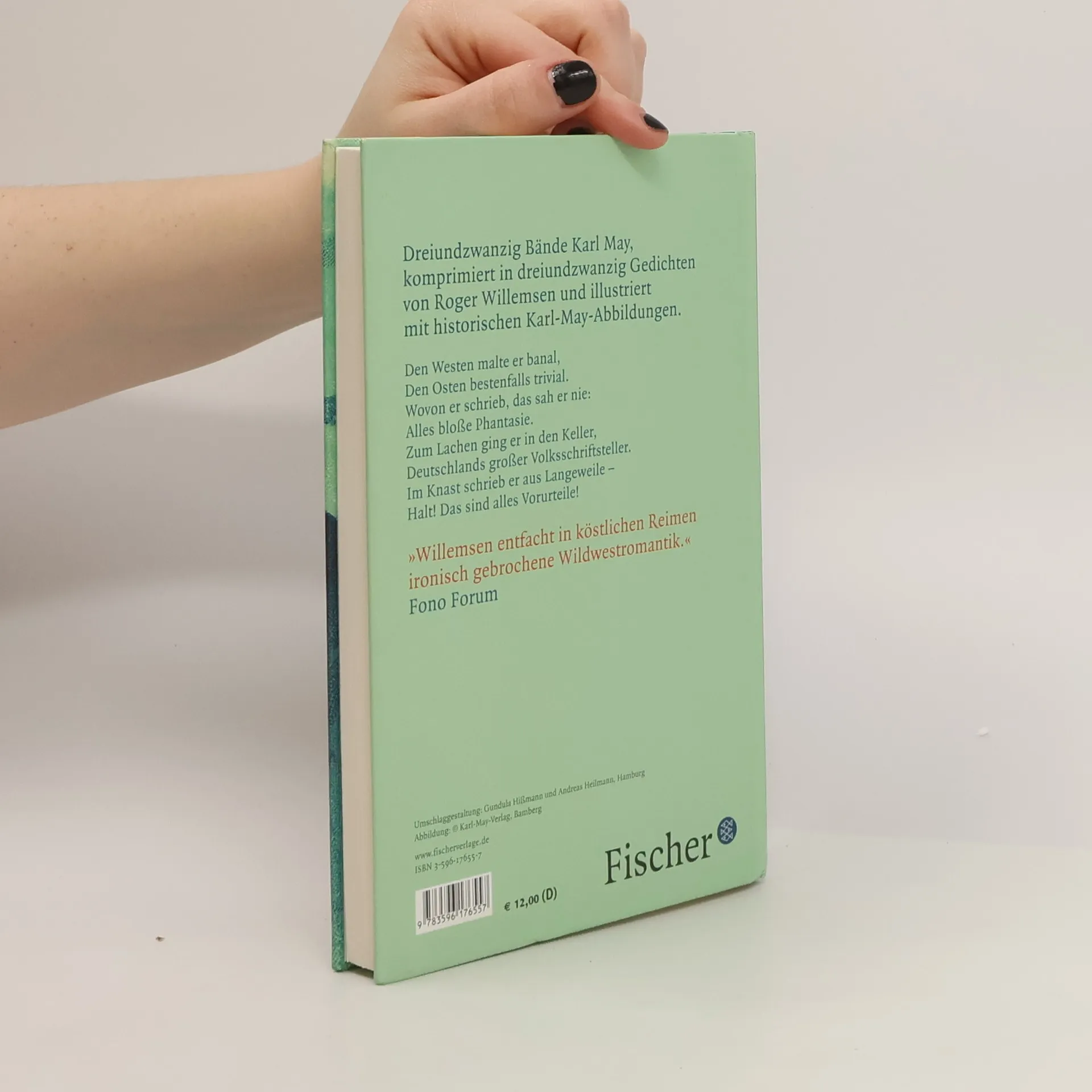 Den Westen malte er banal, den Osten bestenfalls trivial. Wovon er schrieb, das sah er nie: alles bloße Phantasie. Zum Lachen ging er in den Keller, Deutschlands großer Volksschriftsteller. Im Knast schrieb er aus Langeweile – halt! Das sind alles Vorurteile! Dreiundzwanzig Bände Karl May komprimiert in dreiundzwanzig erzählenden Gedichten von Roger Willemsen und illustriert mit historischen Karl-May-Abbildungen: »Dieser Geist bringt Poesie/ in Steppe selbst und in Prärie« – ein Lesevergnügen!