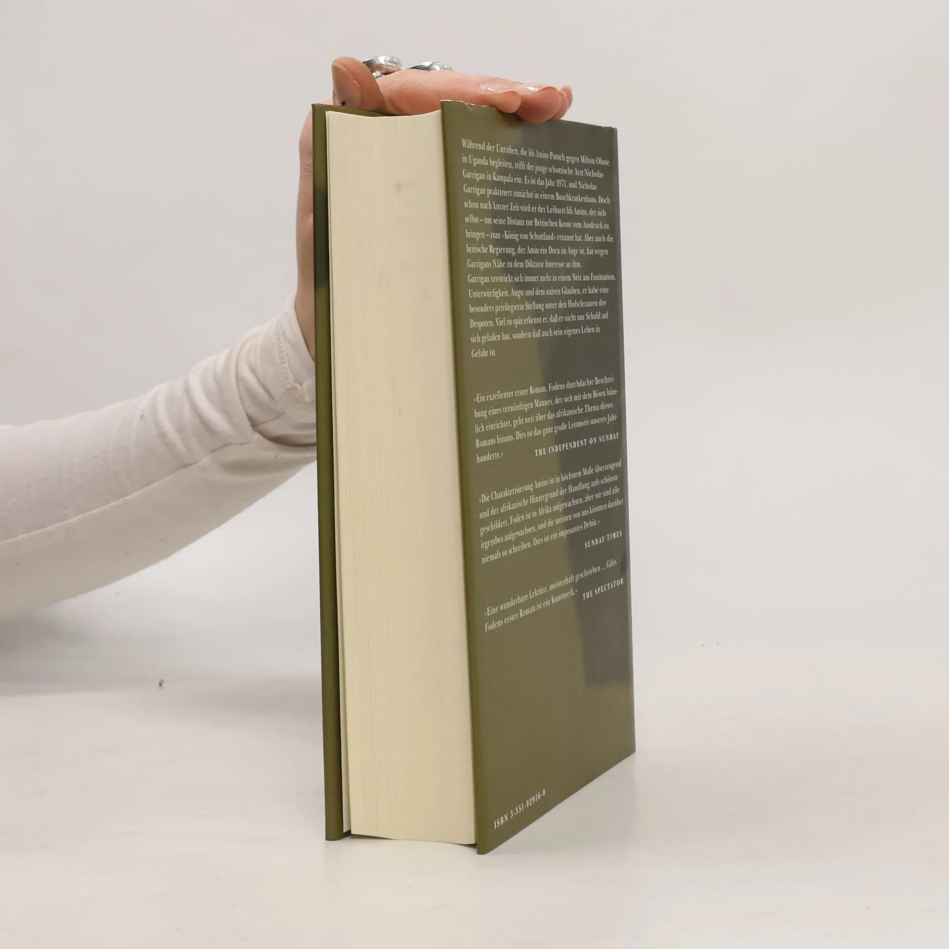 Der schottische Arzt Garrigan wird durch Zufall zum Leibarzt des ugandischen Staatspräsidenten Idi Amin Dada und erlebt aus direkter Nähe das Schreckensregime des grössenwahnsinnigen Diktators mit. - Biografischer Roman.