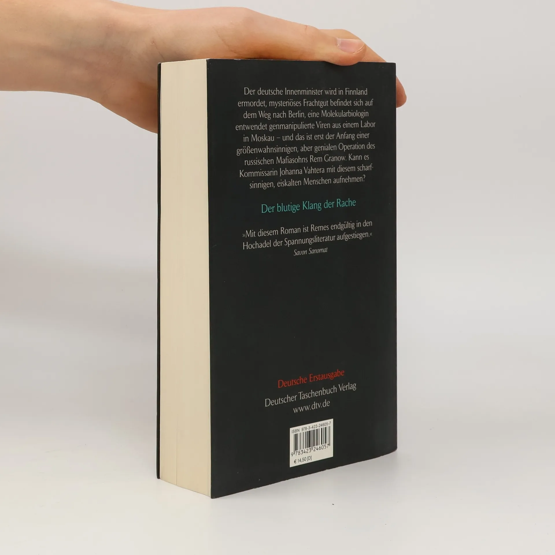 Während eines EU-Gipfels in Finnland wird der deutsche Innenminister ermordet. In einem Wald findet man seine Leiche, nackt und auffallend weiß: jemand hat ihr das gesamte Blut abgezapft. Kommissarin Johanna Vahtera kommt auf die Spur von Rem Granow, dem Sohn eines russischen Mafiabosses. Dieser will Macht über einen echten Staat. Und er will den Tod seiner Mutter rächen. Auf eine ganz besondere Weise. Exklusive Lese- bzw. Hörprobe in Kooperation mit Krimicouch. de: Hier klicken