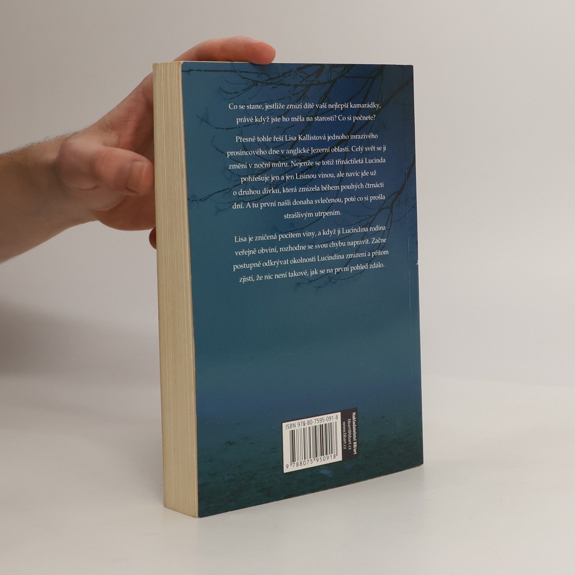 Co se stane, jestliže zmizí dítě vaší nejlepší kamarádky, právě když jste ho měla na starosti? Co si počnete? Přesně tohle řeší Lisa Kallistová jednoho mrazivého prosincového dne v anglické Jezerní oblasti. Celý svět se jí změní v noční můru. Nejenže se totiž třináctiletá Lucinda pohřešuje jen a jen Lisinou vinou, ale navíc jde už o druhou dívku, která zmizela během pouhých čtrnácti dní. A tu první našli donaha svlečenou, poté co si prošla strašlivým utrpením. Lisa je zničená pocitem viny, a když ji Lucindina rodina veřejně obviní, rozhodne se svou chybu napravit. Začne postupně odkrývat okolnosti Lucindina zmizení a přitom zjistí, že nic není takové, jak se na první pohled zdálo.