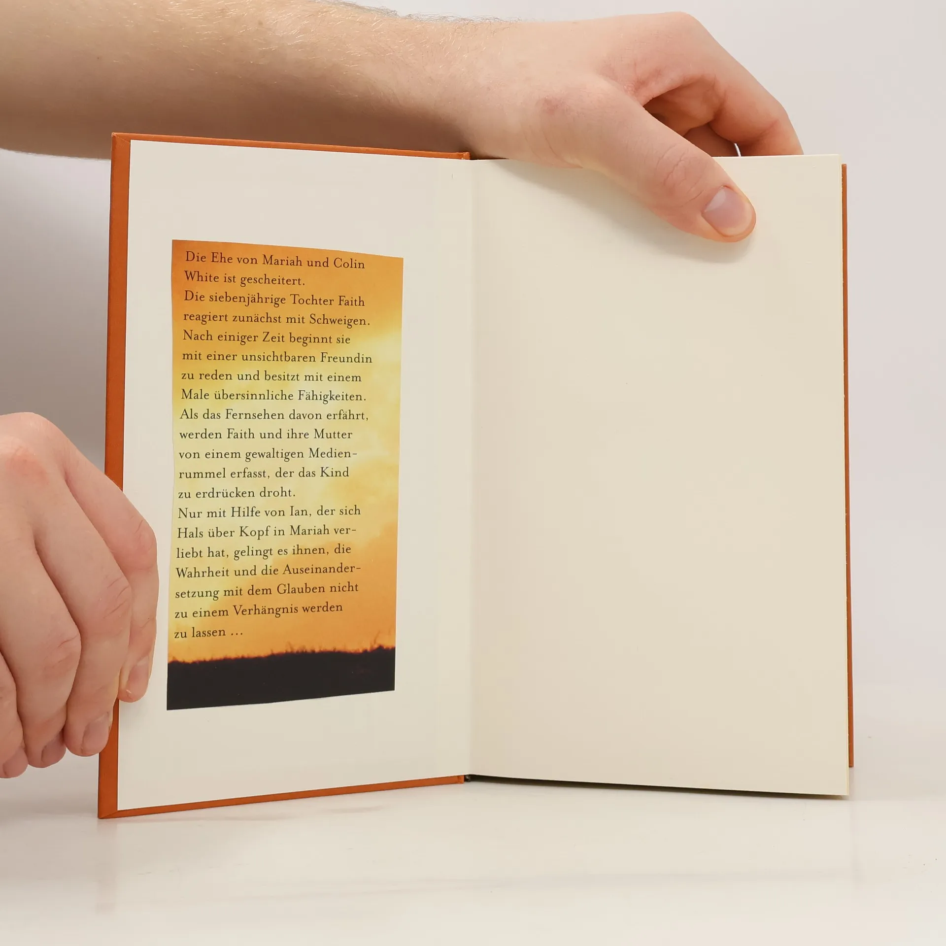 Die Ehe von Mariah und Colin White ist gescheitert. Ihre siebenjährige Tochter Faith reagiert zunächst mit Schweigen, beginnt aber bald mit einer unsichtbaren Beschützerin zu reden. Als Faith übersinnliche Fähigkeiten entwickelt, geraten Mutter und Tochter ins Zentrum eines aufdringlichen Medieninteresses. Nur Ian kommt ihnen zur Hilfe, ein gewiefter Reporter, der sich jedoch Hals über Kopf in Mariah verliebt, was die Dinge nicht einfacher macht … Eine meisterhaft erzählte Geschichte über Wahrheit und Zweifel.