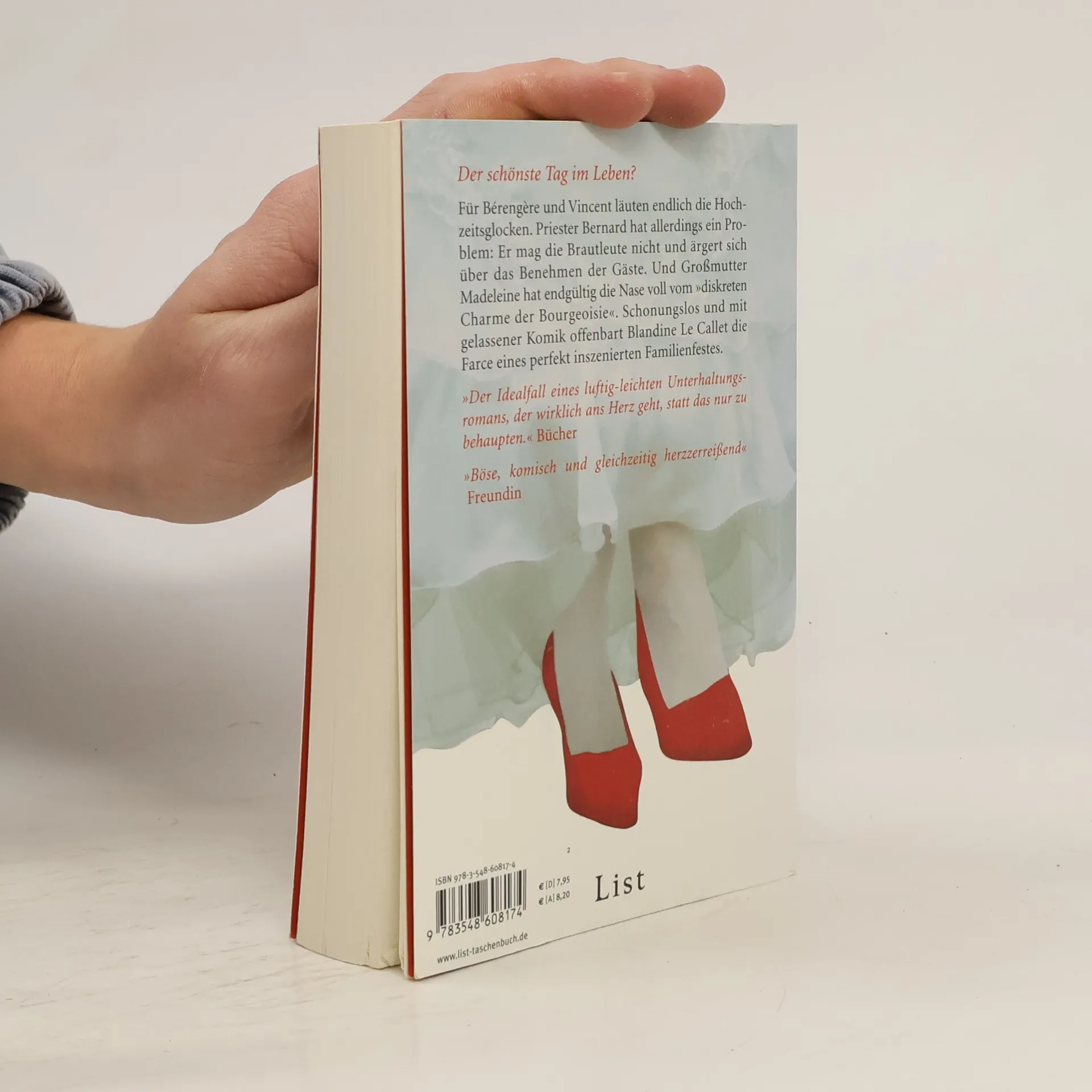 Schonungslos und mit gelassener Komik offenbart Blandine Le Callet in ihrem ersten Roman die Farce eines perfekt inszenierten Familienfestes, wie wir es alle schon einmal erlebt haben. Für Bérengère und Vincent läuten endlich die Glocken. Während sie und ihre Gäste sich auf dem Weg zur Kirche befinden, hat Priester Bernard bereits alles vorbereitet. In der Hochzeitssaison absolviert er hier eine Eheschließung nach der anderen, denn sein schönes Gotteshaus, eine Perle der romanischen Baukunst, ist die perfekte Kulisse. Heute hat Priester Bernard allerdings ein Problem: Er mag die Brautleute nicht und ärgert sich über das Benehmen der Gäste. Als er dann auch noch mit ansehen muss, wie ein behindertes Mädchen aus der ersten Reihe nach hinten versetzt wird, weil sie das perfekte Familienbild stört, sinnt er auf Rache. Auch Großmutter Madeleine hat sich anlässlich der Vermählung ihrer Enkelin etwas vorgenommen: Mit ihrer Ehrlichkeit offenbart sie am Ende einmal mehr den 'diskreten Charme der Bourgeoisie' - die Falschheit dieser feinen Gesellschaft, ihre Lebenslügen und den ausgeprägten Hang zum äußeren Schein. Ein erfrischendes Buch über die Liebe.