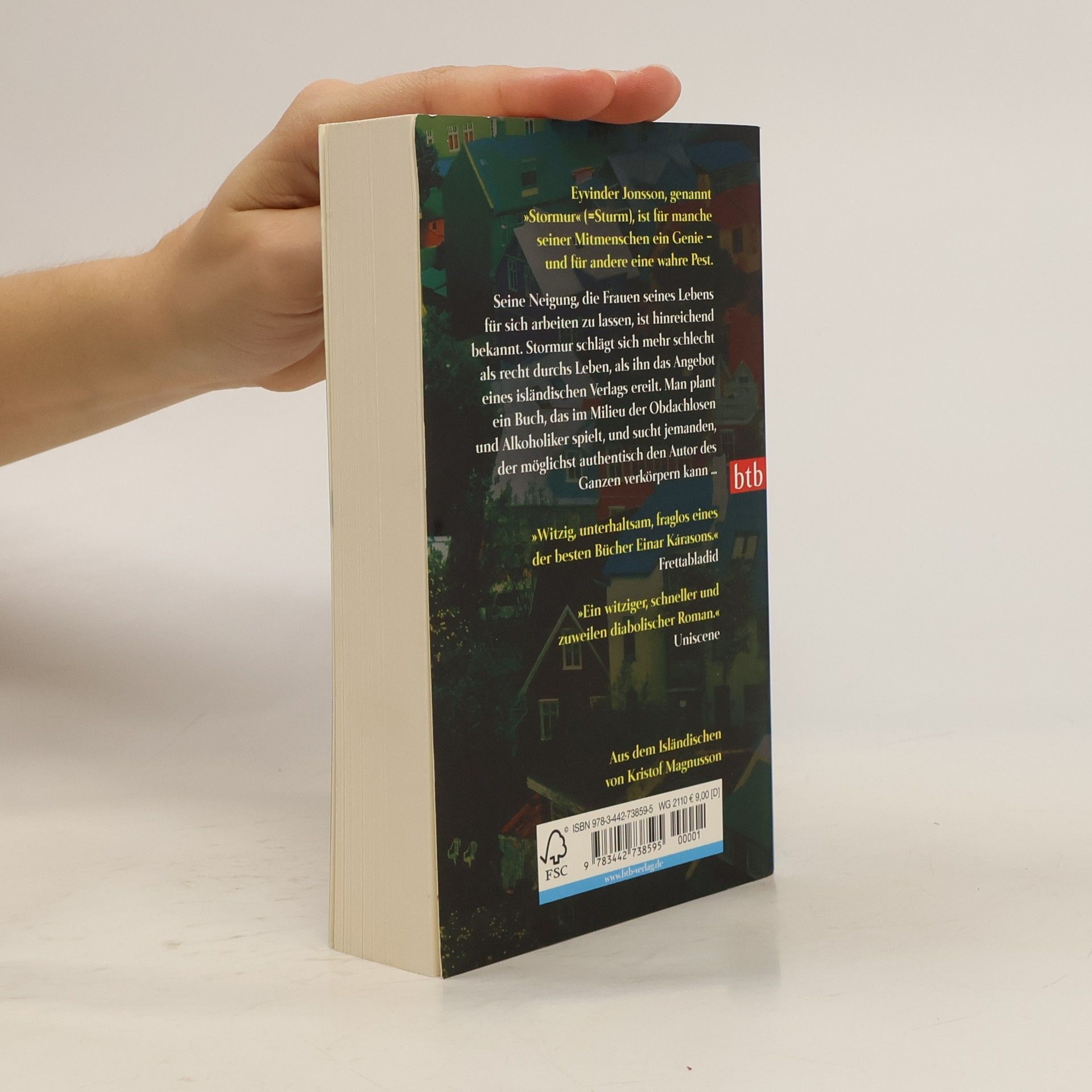 Eyvinder Jonsson, genannt „Stormur“ (=Sturm), ist für manche seiner Mitmenschen ein Genie – und für andere eine wahre Pest. Ein Hang zur Bequemlichkeit zeichnet ihn aus: und seine Neigung, die Frauen seines Lebens für sich arbeiten zu lassen, ist hinreichend bekannt. Stormur schlägt sich mehr schlecht als recht durchs Leben, als ihn das Angebot eines isländischen Verlags ereilt. Man plant ein Buch, das im Milieu der Obdachlosen und Alkoholiker spielt, und sucht nun jemanden, der vor den Medien möglichst authentisch den angeblichen Autor des Ganzen verkörpert. Übersetzt von Kristof Magnusson, der für seinen Debütroman „Zu Hause“ mit dem Rauriser Literaturpreis ausgezeichnet wurde.