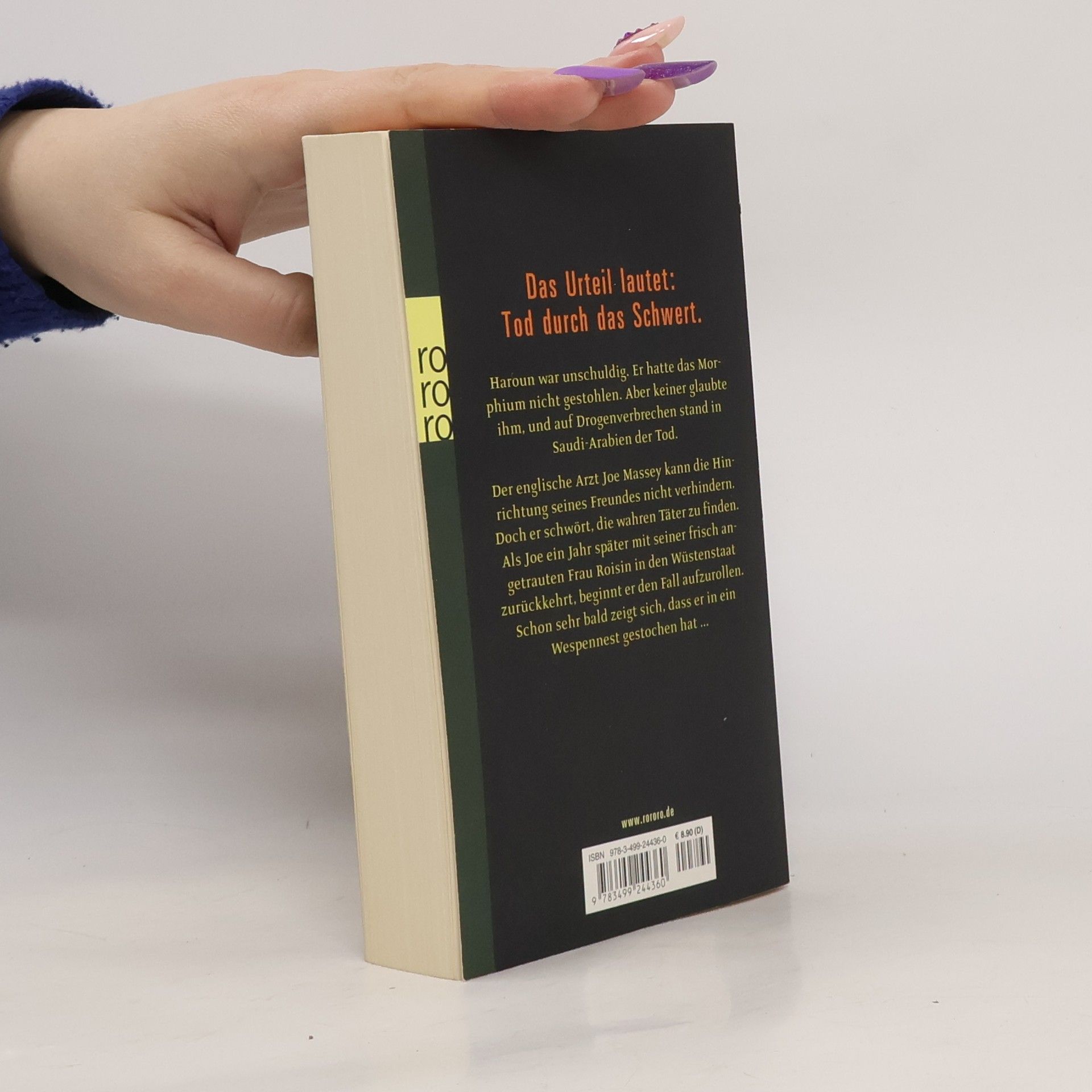 Das Urteil lautet: Tod durch das Schwert.Haroun war unschuldig. Er hatte das Morphium nicht gestohlen. Aber keiner glaubte ihm und auf Drogenverbrechen stand in Saudi-Arabien der Tod.Der englische Arzt Joe Massey kann die Hinrichtung seines Freundes nicht verhindern. Doch er schwört, die wahren Täter zu finden. Als Joe ein Jahr später mit seiner frisch angetrauten Frau Roisin in den Wüstenstaat zurückkehrt, beginnt er den Fall aufzurollen. Schon sehr bald zeigt sich, dass er in ein Wespennest gestochen hat …