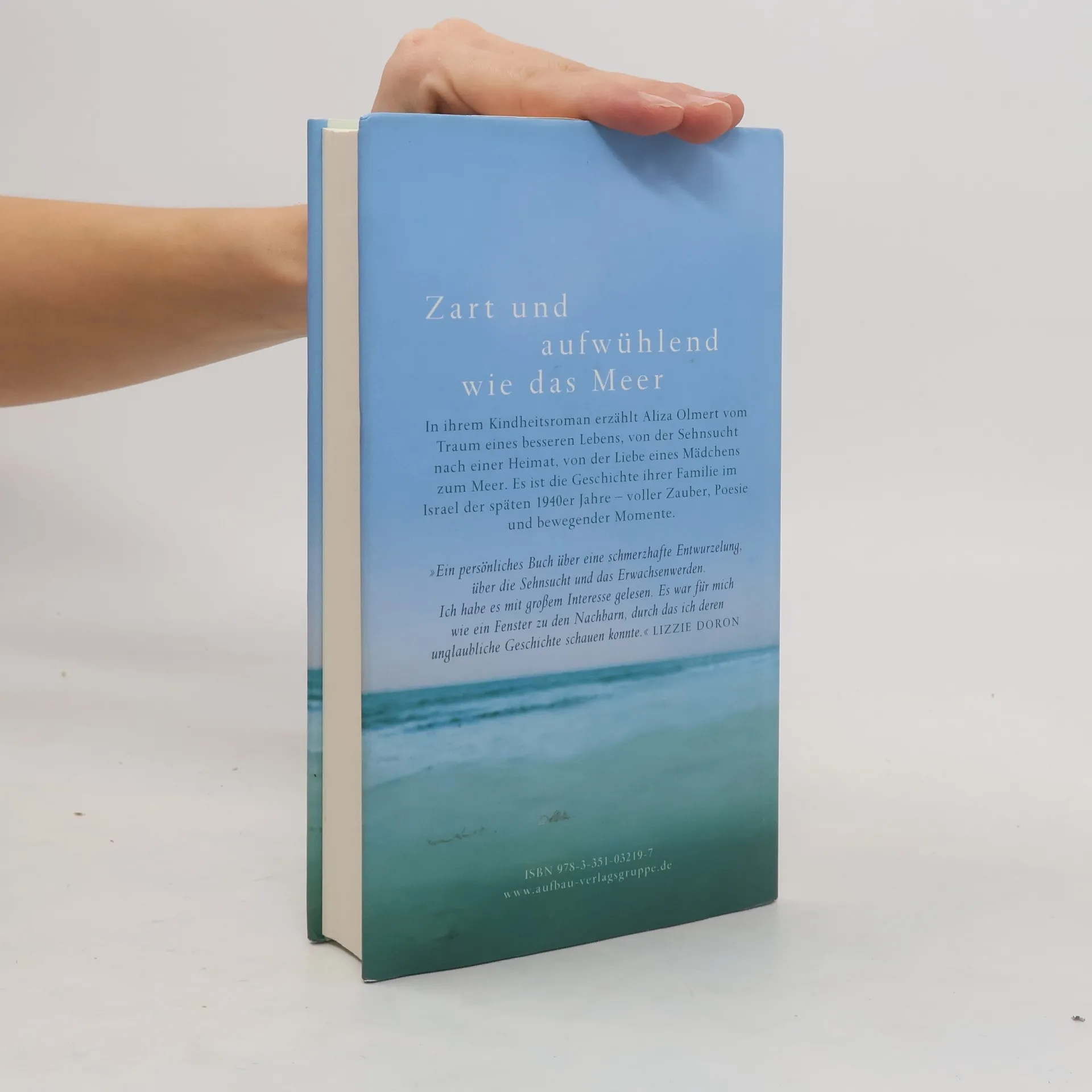 »Eine kleine Heldin mit liebevollem Blick.« Süddeutsche Zeitung In ihrem Kindheitsroman erzählt Aliza Olmert vom Traum eines besseren Lebens, von der Sehnsucht nach einer Heimat, von der Liebe eines Mädchens zum Meer. Es ist die Geschichte ihrer Familie im Tel Aviv der späten 1940er Jahre – voller Zauber, Poesie und bewegender Momente. »Erzählt mit Verve, Wärme, ohne mahnenden Zeigefinger, aber mit viel Melancholie und Heiterkeit.« NDR Alusia ist fünf Jahre alt, als sie mit ihren Eltern ein Schiff besteigt. Krieg, Verfolgung und das Wunder, überlebt zu haben, liegen hinter der Familie, die nun das Gelobte Land ansteuert. Für das Mädchen ist die Welt der Erwachsenen ein Buch mit sieben Siegeln. Anuschka, die melancholische Mutter, fürchtet die unbequemen Lebensumstände und sehnt sich nach Europa, wo sie den geliebten Toten näher ist. Olek, der tatkräftige Vater, träumt von einem Neuanfang im jungen Staat Israel. Im Gepäck führt er einen Schatz, der das Glück seiner Familie besiegeln soll: Aus den Trümmern Münchens hat er Tausende hochwertiger Schnallen, die für den Krieg produziert worden waren, geborgen. Aber in Palästina liegt das Glück nicht auf der Straße. Geld und Liebe sind knappe Güter, und die Schatten der Vergangenheit verfliegen nicht. Doch die heranwachsende Alusia weiß: „Wer ein Stück vom Meer sehen kann, muss glücklich sein.“ »Ein anrührendes Buch mit einem der schönsten ›happy endings‹ von einer Schriftstellerin von Rang.« Die Welt