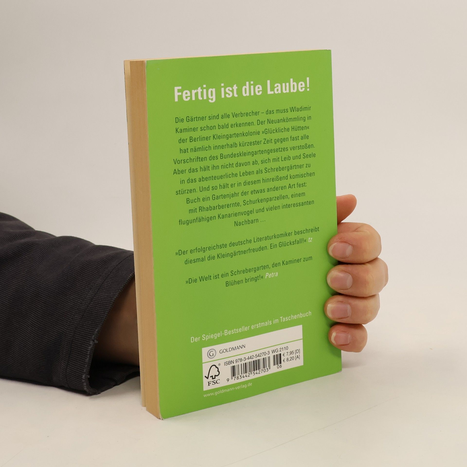 Laube, Liebe, Hoffnung Die Gärtner sind alle Verbrecher – das muss Wladimir Kaminer schon bald erkennen. Der Neuankömmling in der Berliner Kleingartenkolonie „Glückliche Hütten“ hat nämlich innerhalb kürzester Zeit gegen fast alle Vorschriften des Bundeskleingartengesetzes verstoßen. Aber das hält ihn nicht davon ab, sich mit Leib und Seele in das abenteuerliche Leben als Schrebergärtner zu stürzen. Und so hält er in diesem hinreißend komischen Buch ein Gartenjahr der etwas anderen Art fest, mit Rhabarberernte, interessanten Nachbarn und ungezähmter Natur …Fertig ist die Laube!Der Schrebergarten als Ort hinreißend lustiger Abenteuer und Heimat deutscher Eigenarten.