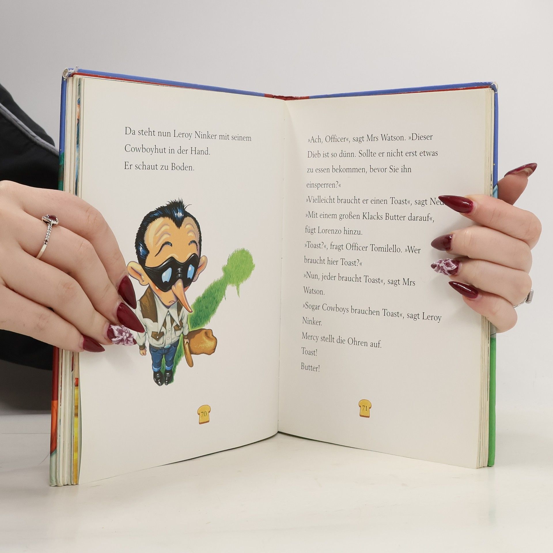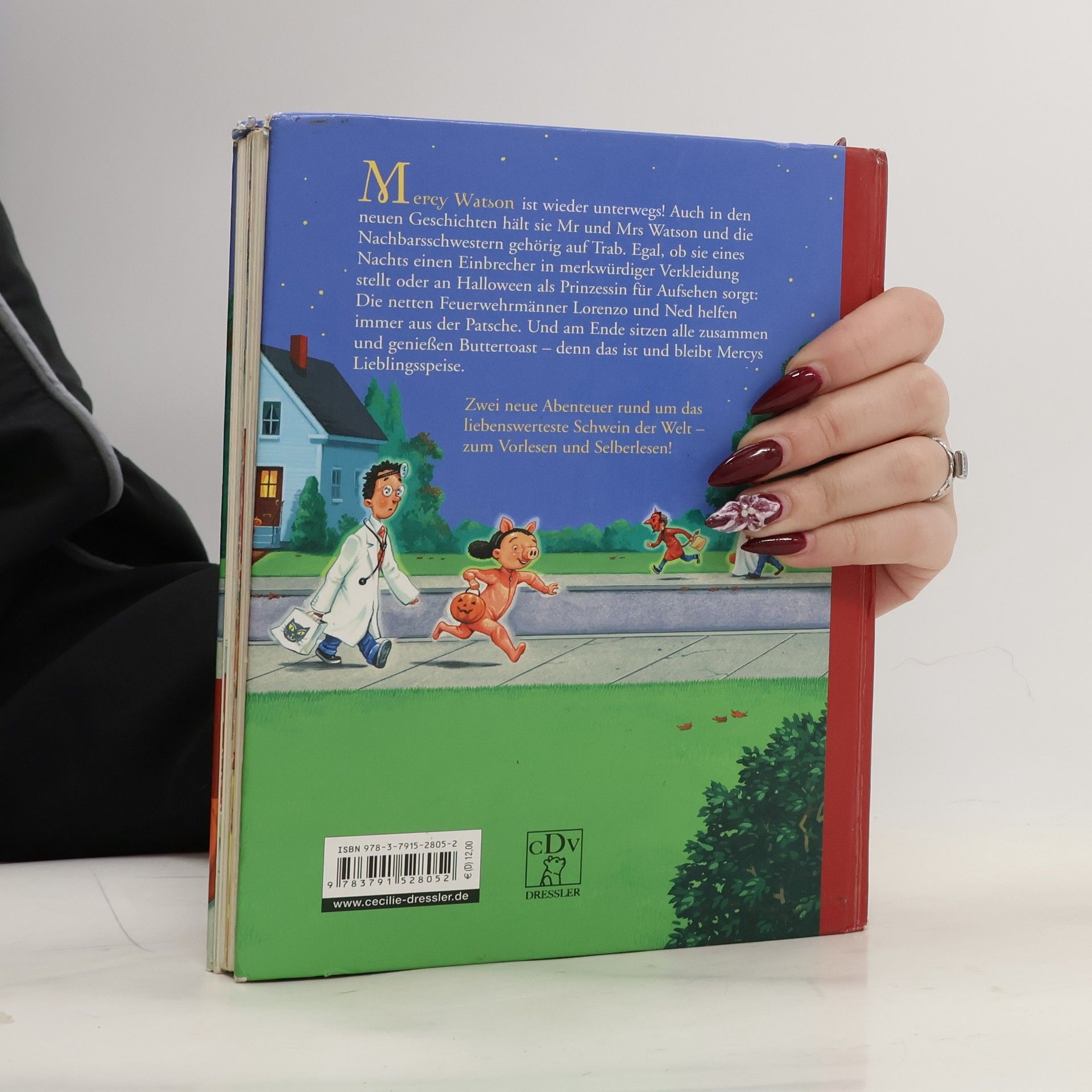 Hier kommt Mercy, das glückliche Superschwein Yippie-i-joh! Wer hätte gedacht, dass Mercy Watson sogar einen Einbrecher fangen kann? Als die Feuerwehrleute kommen, sitzt das Wunderschwein der Watsons auf dem dünnen Dieb, der sich nicht mehr bewegen kann. Und auch zu Halloween ist Mercy nicht zu bremsen. Denn natürlich würden Mr und Mrs Watson niemals ohne ihr Hausschwein Halloween feiern! Aber wie sollen sie Mercy verkleiden? Dabei ist das doch eigentlich sonnenklar: Mercy geht als Prinzessin, mit Krone und Rüschenkleid. Doch wie eine Prinzessin benimmt sie sich wirklich nicht … Zwei neue, übermütige Schweineabenteuer mit frechen, knallbunten Bildern zum Vorlesen und ersten Selberlesen.