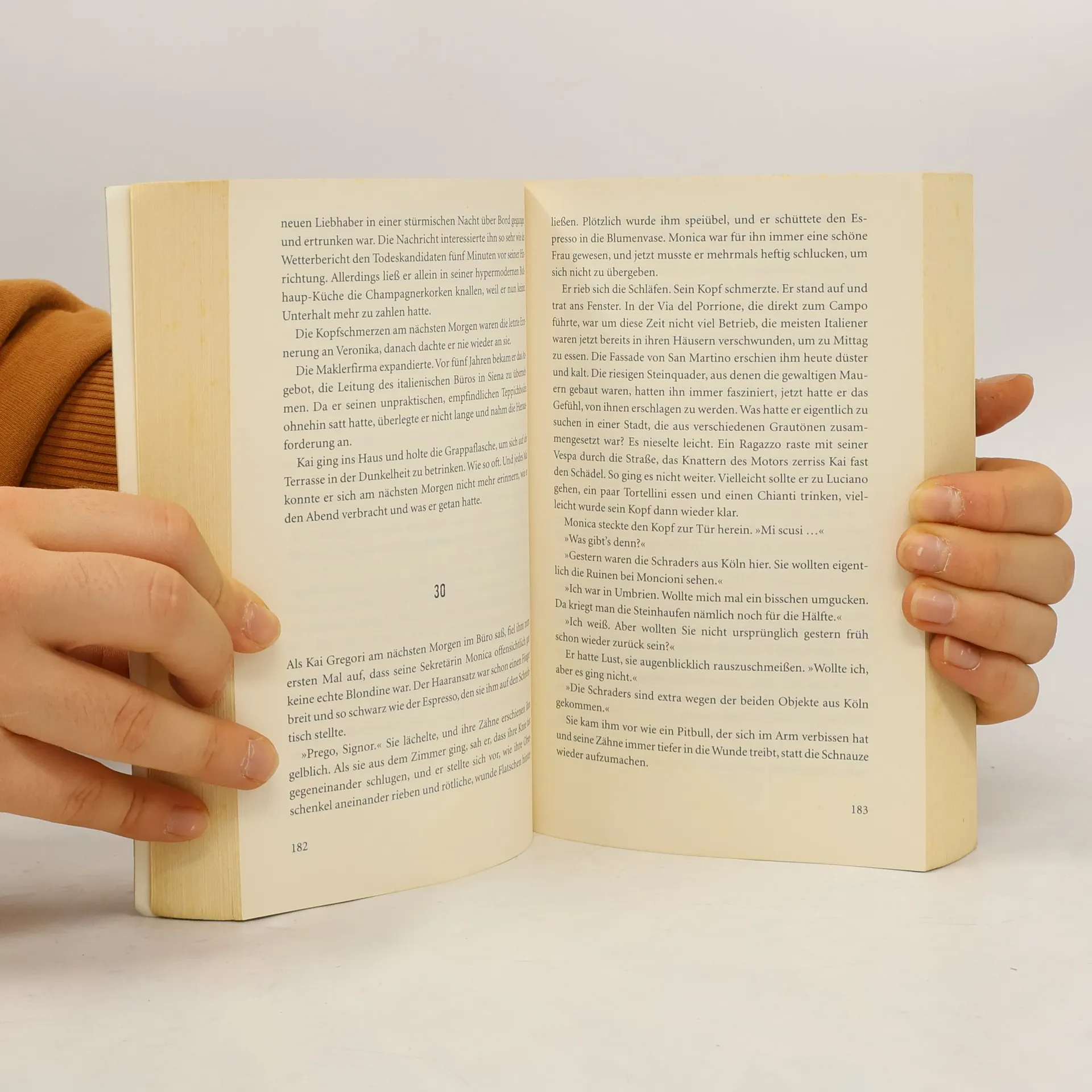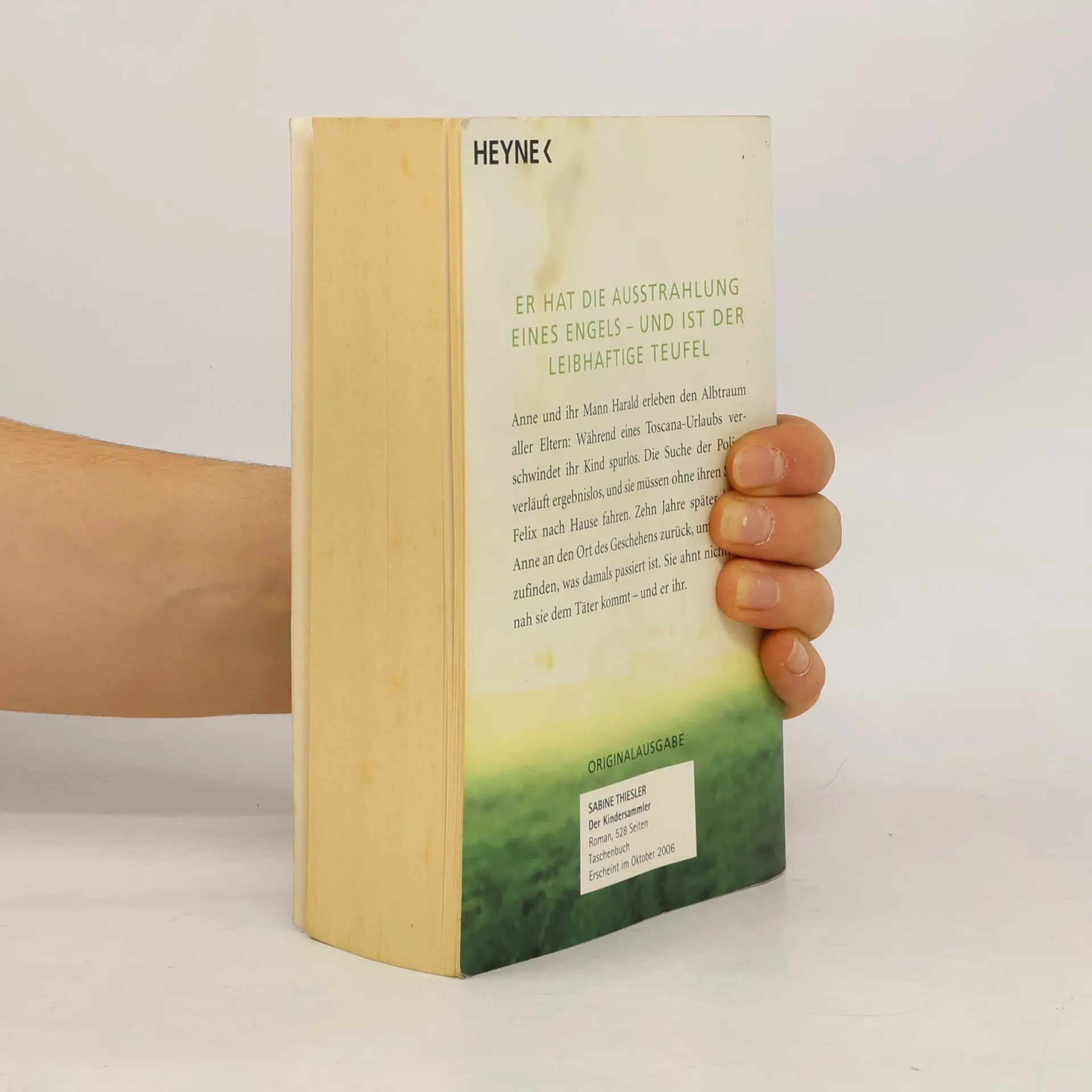 Es geschieht am helllichten Tag Anne und ihr Mann Harald erleben den Albtraum aller Eltern: Während eines Toscana-Urlaubs verschwindet ihr Kind beim Spielen spurlos. Die Suche der Polizei verläuft ergebnislos, und sie müssen ohne ihren Sohn nach Hause fahren. Zehn Jahre später kehrt Anne an den Ort des Geschehens zurück, um herauszufinden, was damals passiert ist. Sie ahnt nicht, wie nah sie dem Täter kommt – und er ihr. Ein Roman, der einem zuweilen den Hals abschnürt, so schrecklich realistisch ist die Geschichte.