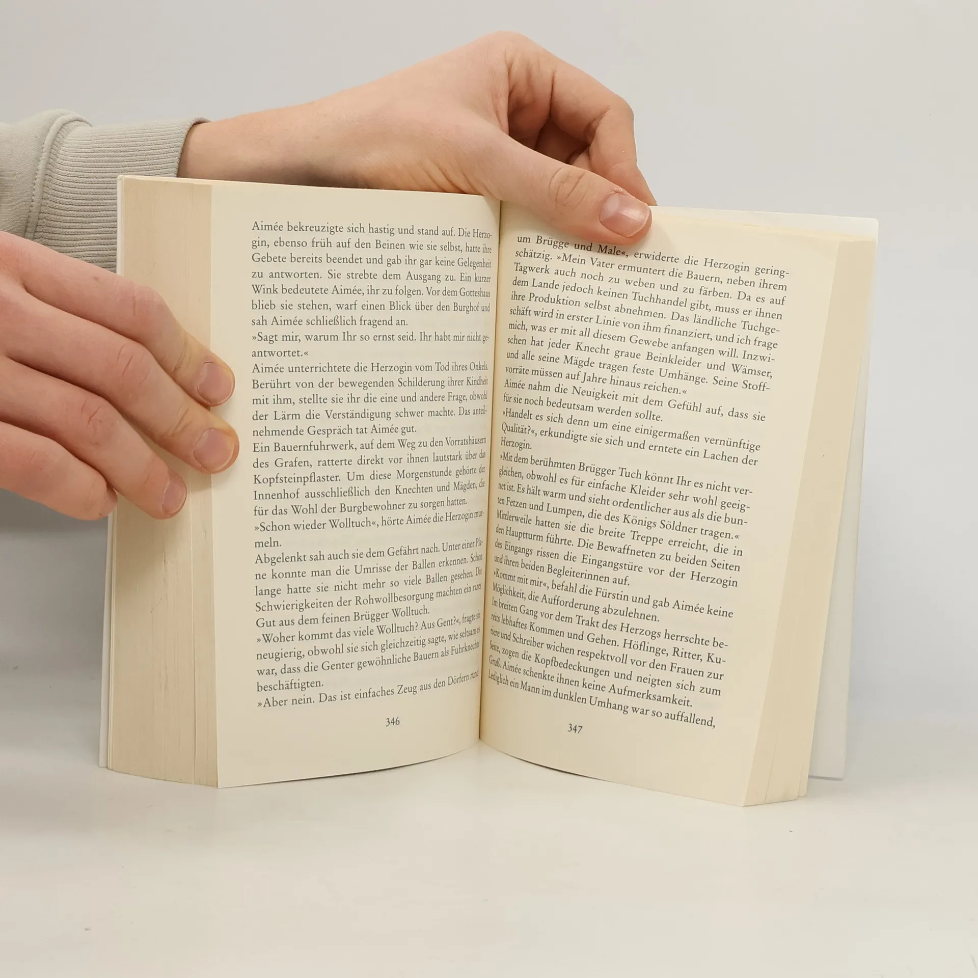 Brügge, Ende des 14. Jahrhunderts. Prächtige Handelshäuser säumen die Kanäle, Kaufleute wetteifern mit dem Adel um die Macht. Für die junge Aimée Cornelis jedoch ist guter Rat teuer: Nach dem tragischen Tod ihres Mannes ist sie auf sich allein gestellt – das einst mächtige Handelshaus, in das sie so hoffnungsvoll eingeheiratet hatte, steht vor dem Bankrott. Doch Aimée kämpft. Mit Ware von höchstem Luxus, mit Tapisserien und kostbaren Stoff en will sie beweisen, dass auch eine Frau im Handel Erfolg haben kann. Niemand glaubt an sie, bis auf den rätselhaften venezianischen Bankier Domenico Contarini – ausgerechnet der Mann, der Aimée vernichten könnte. Sie ist fasziniert und muss zugleich entsetzt erkennen, dass ihr die Fäden aus der Hand zu gleiten drohen …