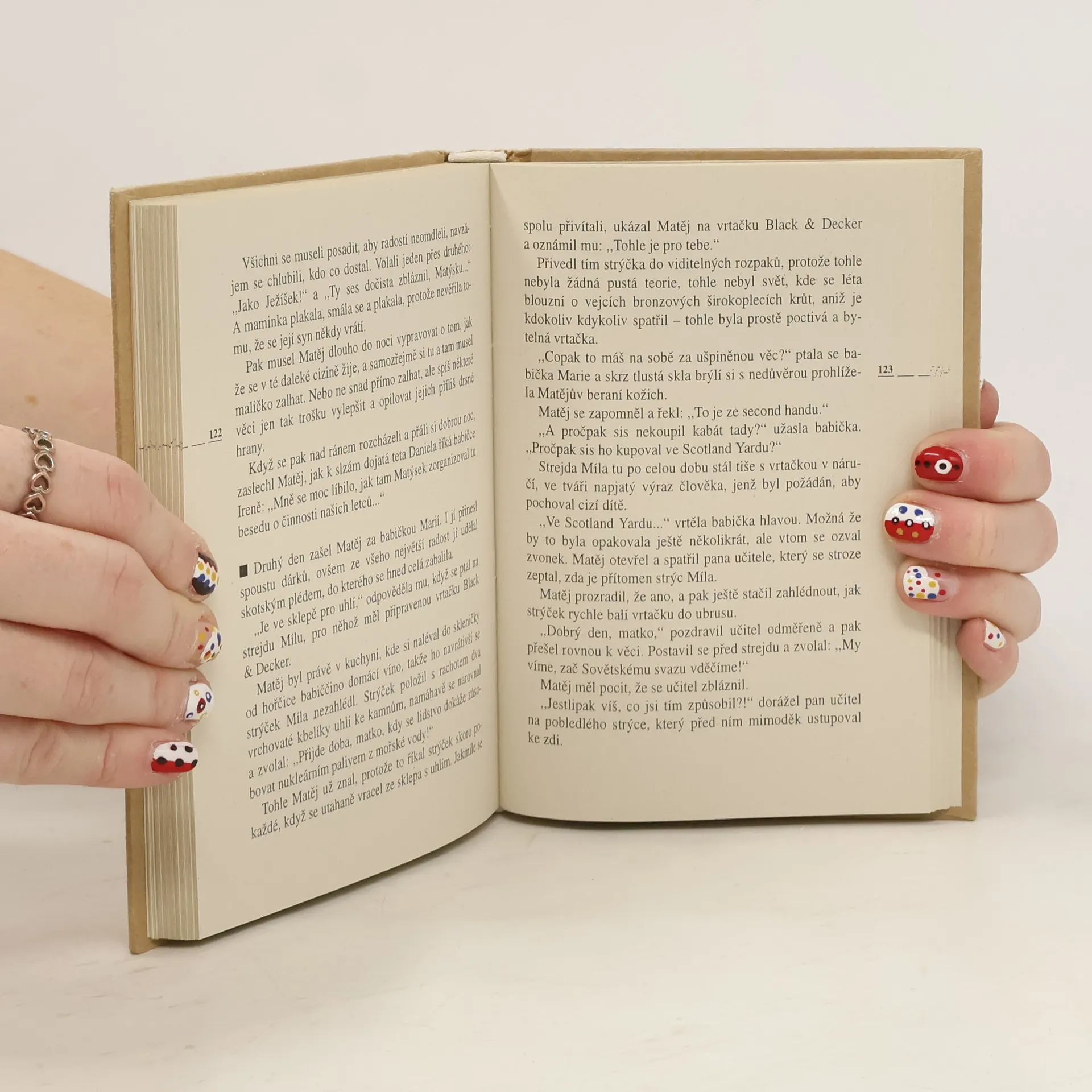 Humorně laděný román je příběhem dvou babiček s naprosto rozdílným politickým přesvědčením, jak jej s odstupem vnímá jejich dospělý vnuk. Jako v celé Šabachově tvorbě se i zde mísí osobní zkušenosti a zážitky s literární fikcí.
