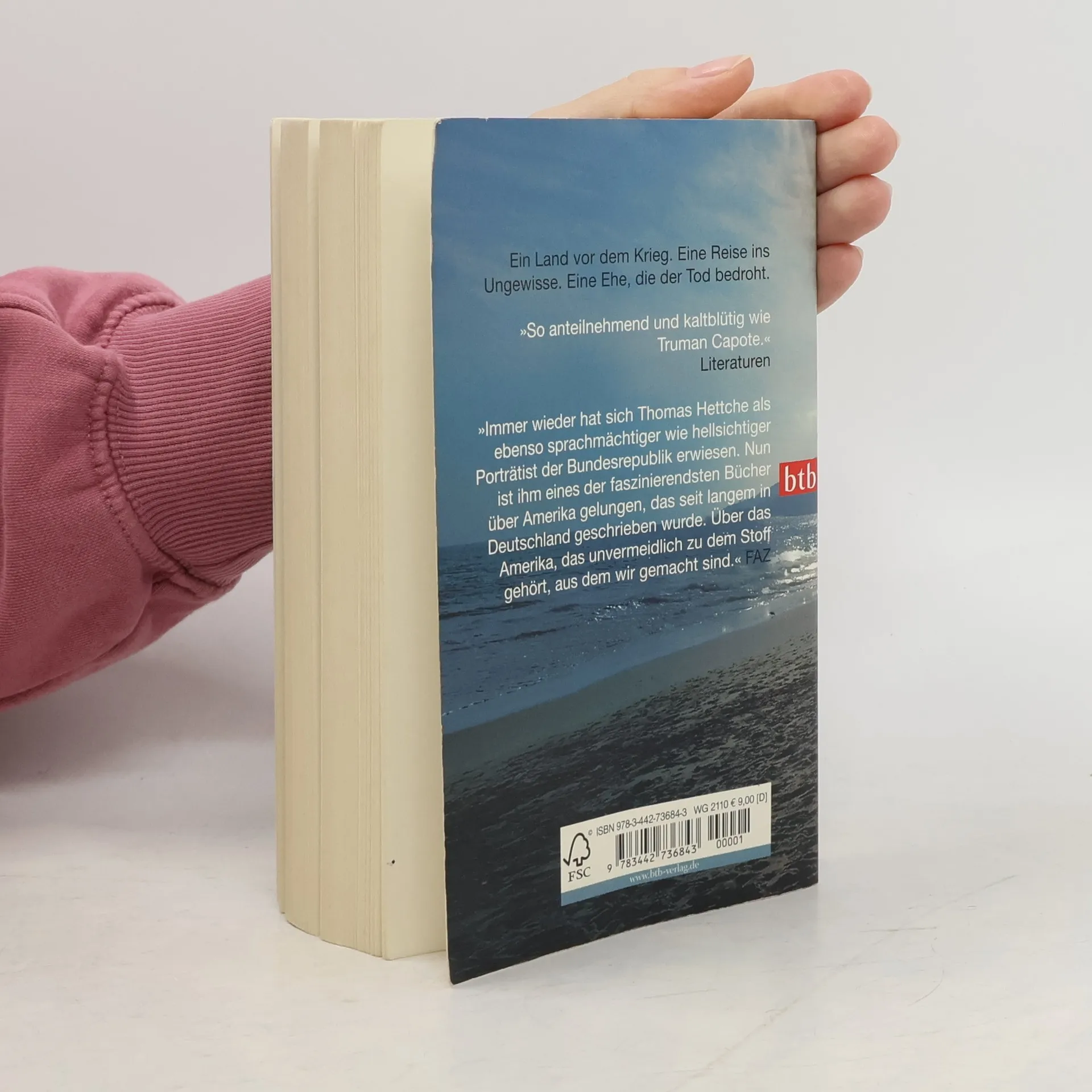 Ein Land vor dem Krieg. Eine Reise ins Ungewisse. Eine Ehe, die der Tod bedroht. Es sollte nur eine kurze Reise nach New York werden, aber es wird ein langer Trip ins Herz der USA. Mit der atemberaubenden Spannung eines Thrillers erzählt Hettche von dem deutschen Intellektuellen Niklas Kalf, dessen Frau entführt wird, und der seinen Elfenbeinturm verlassen muss und eingeholt wird von der politischen, gesellschaftlichen Realität. Schließlich steht die Entführung in direktem Zusammenhang mit Kalfs Forschung. Nur hat er das Material nicht, das die Entführer verlangen. Er handelt nicht, er lässt sich treiben, bis es fast zu spät ist. Nominiert für die „Shortlist“ des Deutschen Buchpreises.