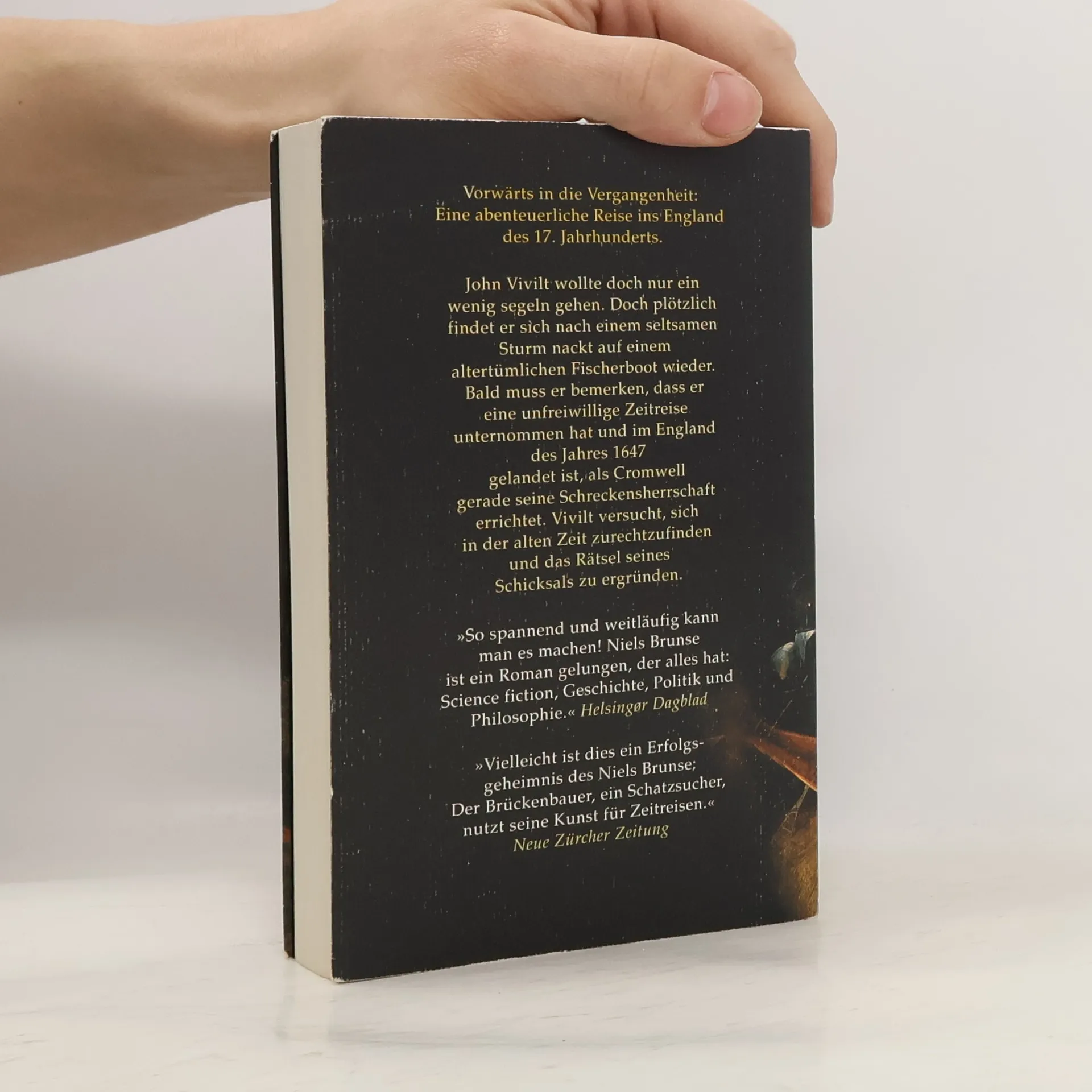 Vorwärts in die Vergangenheit: Eine abenteuerliche Reise ins England des 17. Jahrhunderts. John Vivilt wollte doch nur ein wenig segeln. Doch plötzlich findet er sich in zwar angenehmer, aber seltsam anmutender Gesellschaft auf einem Fischerboot wieder. Bald bemerkt er, dass er eine unfreiwillige Zeitreise unternommen hat und im England des Jahres 1647 gelandet ist, als Cromwell gerade seine Schreckensherrschaft errichtet. Vivilt macht das Beste aus seiner Situation, legt sich eine 'zeitgemäße' Identität zurecht und versucht in den Lauf der Weltgeschichte einzugreifen.
