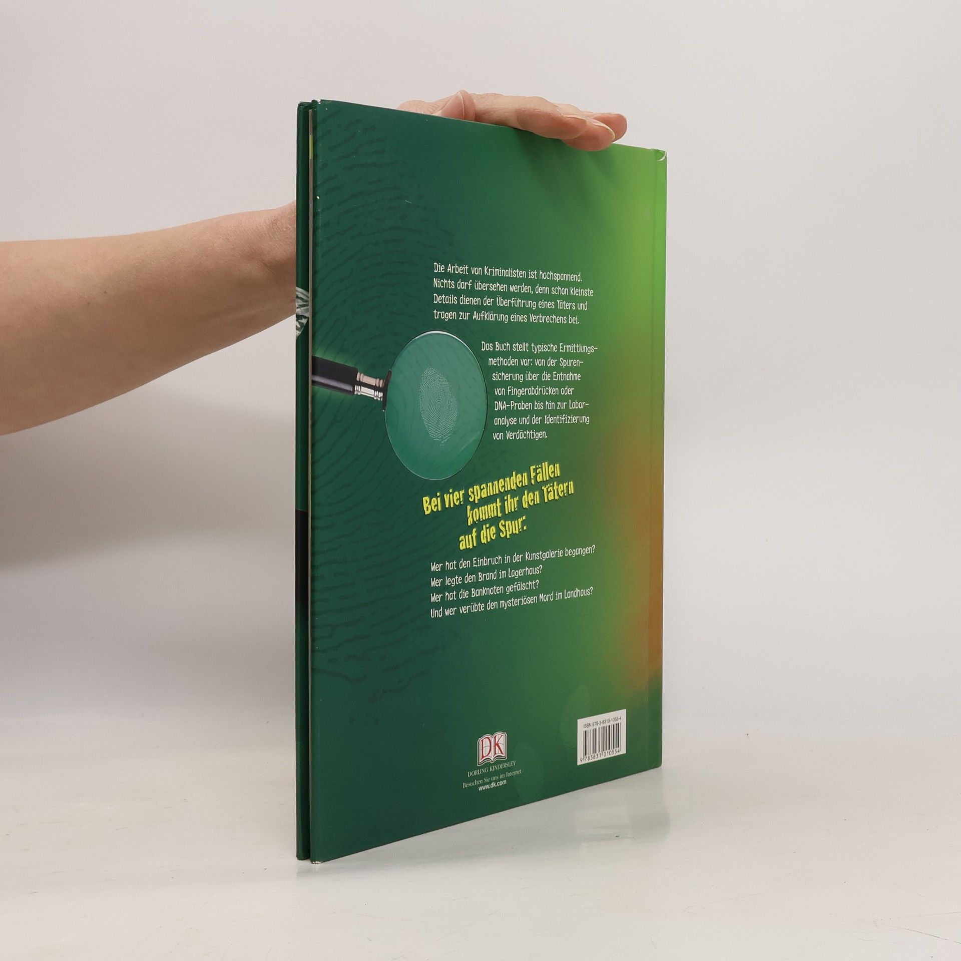 Wie arbeiten Polizeispezialisten und welche kriminalistischen Ermittlungsmethoden setzen sie ein? Dieses interaktive Buch für neugierige Spürnasen enthält viele spannende Aktivitäten zum Mitmachen. An vier unterschiedlichen Tatortszenen werden typische Ermittlungsmethoden erklärt, von der Spurensicherung über DNA- Proben bis zur Identifizierung Verdächtiger. Besonders interessant ist es, zu erfahren, welche moderne Technik man heute dabei einsetzt: so etwa die Entnahme von Abdrücken mit einem Scanner, der Abgleich mit großen Datenbanken oder die Gesichtskonstruktion am Computer. Viele tolle Aktivitäten wie z. B. mit Lupe, Stempelkissen oder Gips Spuren zu sichern, können dabei ganz einfach von zu Hause durchgeführt werden. Und zwischendurch gilt es kleine Fälle zu lösen: wer hat die Banknoten gefälscht und wer hat den Brand im Lagerhaus gelegt? Ganz schön aufregend! Ab 10 Jahren.
