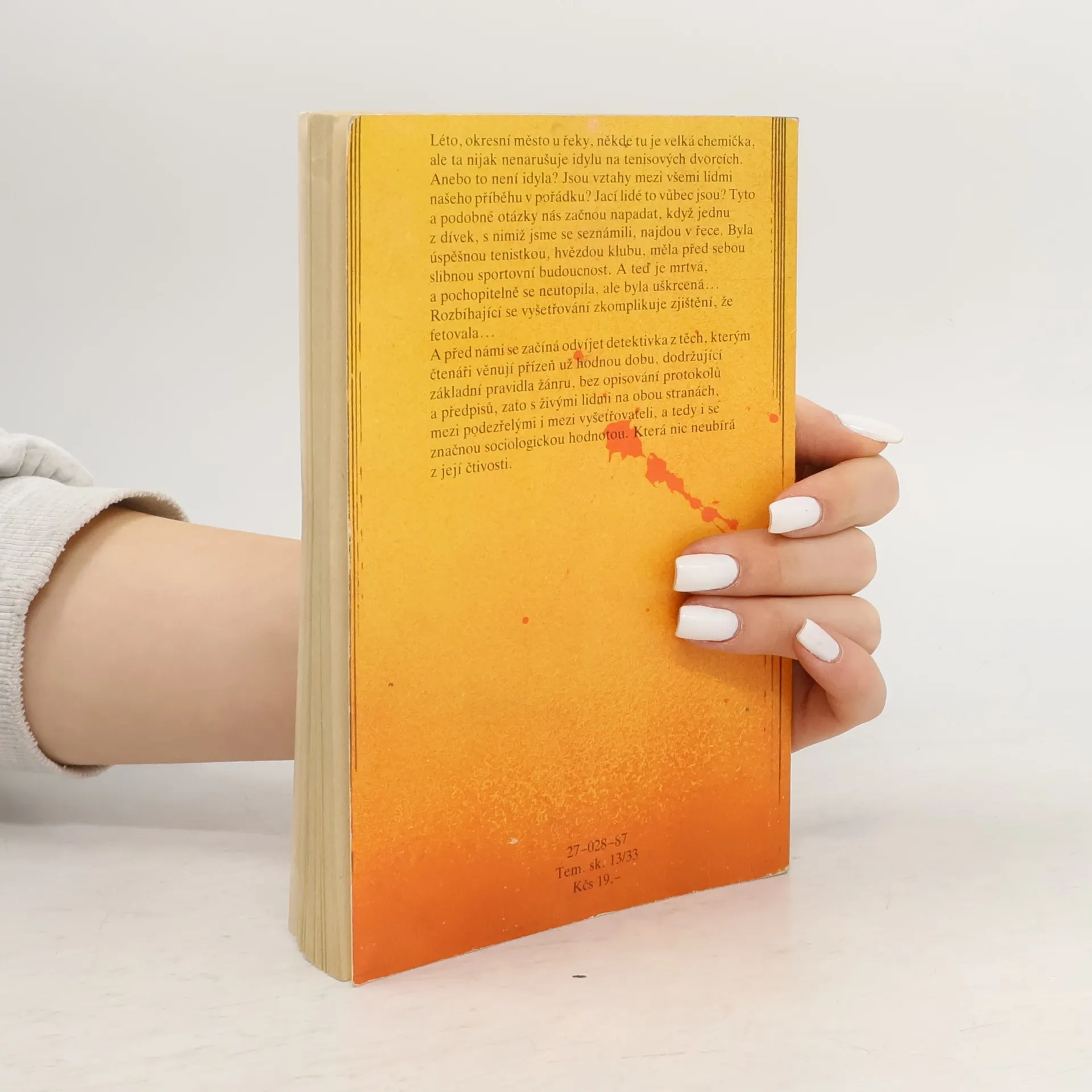 Léto, okresní město u řeky, někde tu je velká chemička, ale ta nijak nenarušuje idylu na tenisových dvorcích. Anebo to není idyla? Jsou vztahy mezi všemi lidmi našeho příběhu v pořádku? Jací lidé to vůbec jsou? Tyto a podobné otázky nás začnou apadat, když jednu z dívek, s nimiž jsme seseznámili, najdou v řece. Byla úspěšnou tenistkou, hvězdou klubu, měla před sebou slibnou sportovní budoucnost. A teď je mrtvá, a pochopitelně se neutopila, ale byla uškrcená...Rozbíhající se vyšetřování zkomplikuje zjištění, že fetovala...