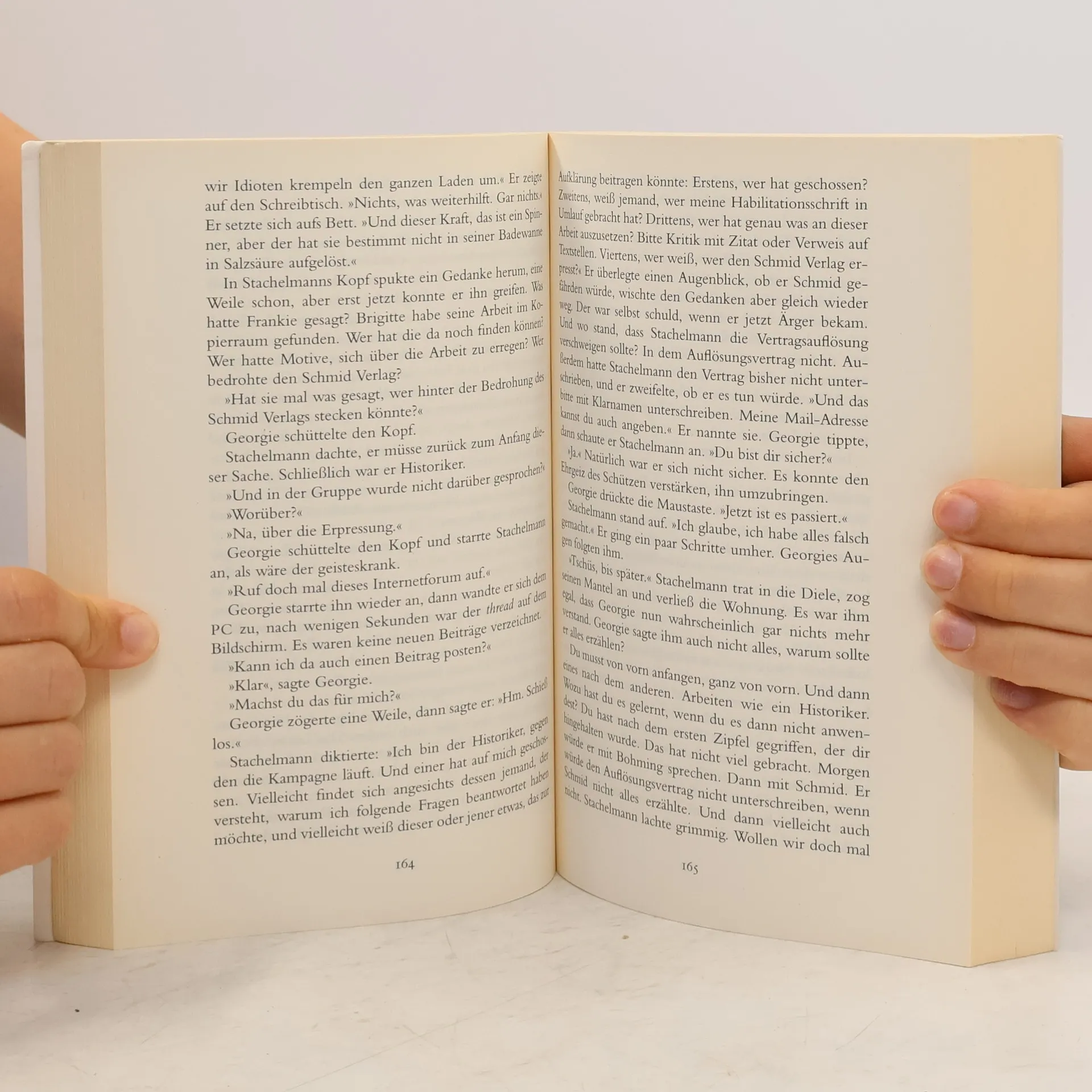 Josef Maria Stachelmann hat seine Habilitation erfolgreich abgeschlossen und wartet auf eine Lehrstuhlberufung, während seine Beziehung zu Anne harmonisch verläuft. Doch plötzlich wird er an der Hamburger Universität mit Schüssen konfrontiert, die ihn zwar verfehlen, aber auf einen gezielten Anschlag hindeuten. Die Polizei entdeckt, dass ein Militärgewehr verwendet wurde, kann jedoch keine weiteren Spuren finden. Gleichzeitig wird Stachelmann Opfer einer Rufmordkampagne im Internet, die ihn in ein Labyrinth der Angst stürzt. Er erkennt, dass seine Forschung über das KZ Buchenwald im Mittelpunkt steht und jemand bereit ist, dafür zu töten. Eine Studentin wird ermordet, möglicherweise weil sie dem geheimnisvollen Schützen auf die Spur gekommen ist. Entschlossen, den Täter zu finden, deckt Stachelmann eine Lebenslüge auf. Erst als er sich auf seine Fachkenntnisse stützt, wird ihm klar, dass die Lösung des Verbrechens in Buchenwald liegt, dessen Geschichte noch nicht abgeschlossen ist. In diesem spannenden Kriminalroman wandeln sich Gewissheiten in Fragen, Verdächtige werden zu Helfern, und Freunde entpuppen sich als Feinde. Als Stachelmann schließlich seinen vierten Fall löst, trifft er eine folgenschwere Entscheidung.