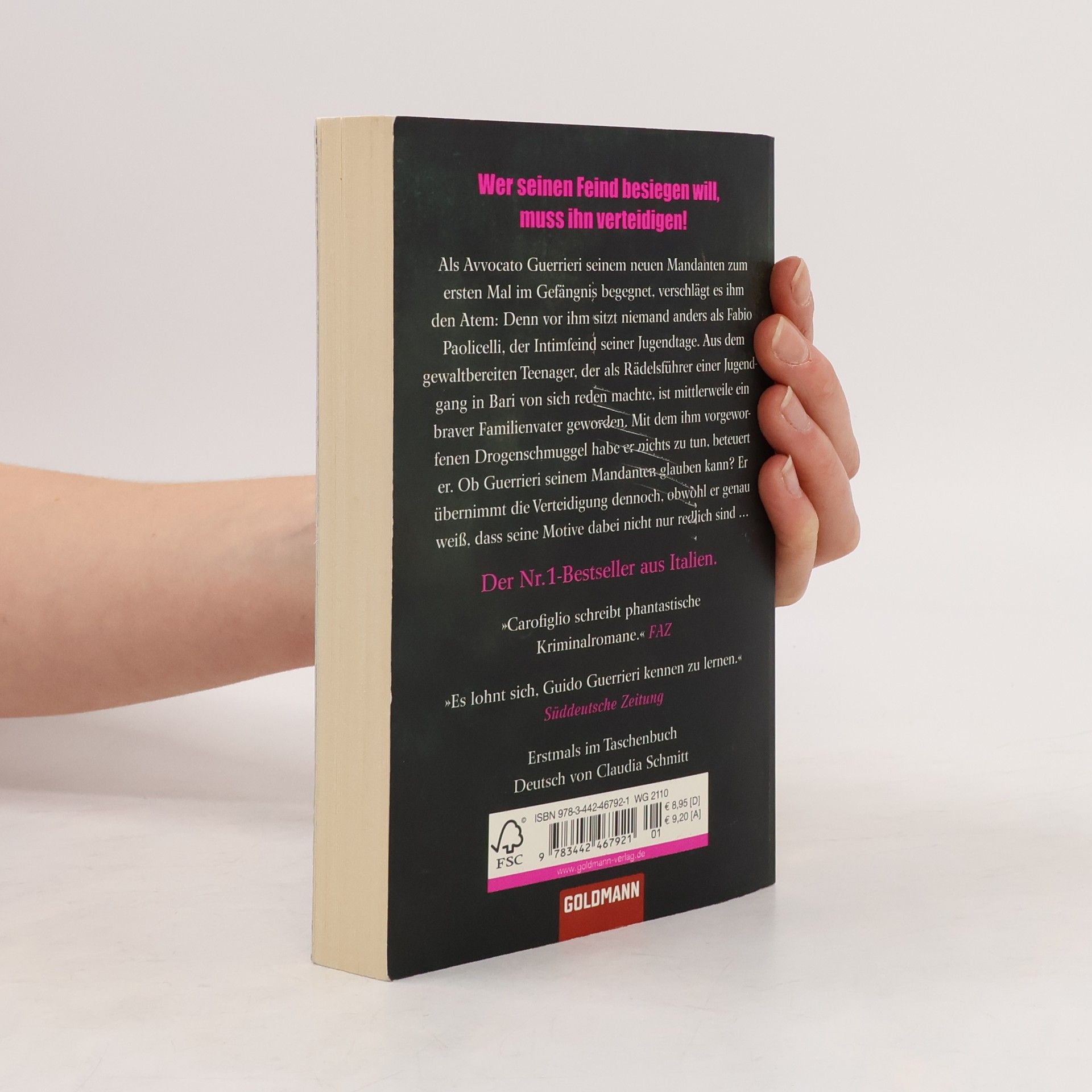 Wer seinen Feind besiegen will, muss ihn verteidigen! Als Avvocato Guerrieri seinem neuen Mandanten zum ersten Mal im Gefängnis begegnet, verschlägt es ihm den Atem: Denn vor ihm sitzt niemand anders als Fabio Paolicelli, der Intimfeind seiner Jugendtage. Aus dem gewaltbereiten Teenager, der als Rädelsführer einer Jugendgang in Bari von sich reden machte, ist mittlerweile ein braver Familienvater geworden. Mit dem vorgeworfenen Drogenschmuggel habe er nichts zu tun, beteuert er. Ob Guerrieri seinem Mandanten glauben kann, weiß er nicht. Er übernimmt die Verteidigung jedoch trotzdem, obwohl er genau weiß, dass seine Motive dabei nicht nur redlich sind … Der dritte Guido-Guerrieri-Roman aus der Feder des ehemaligen Anti-Mafia-Staatsanwalts.