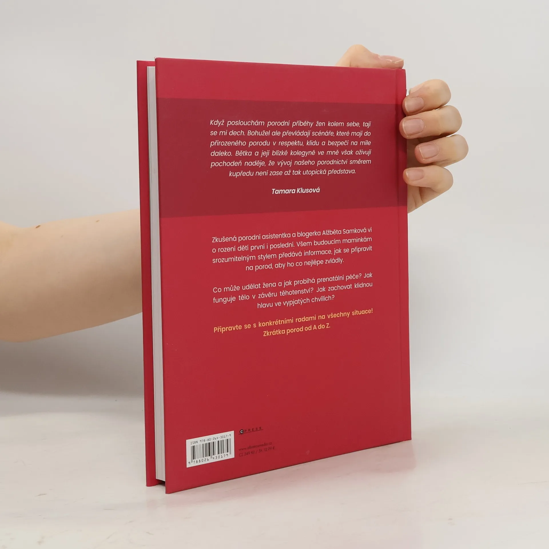 Zkušená porodní asistentka a blogerka Alžběta Samková ví o rození dětí první i poslední. Všem budoucím maminkám srozumitelným stylem předává informace, jak se připravit na porod, aby ho co nejlépe zvládly. Co může udělat žena a jak probíhá prenatální péče? Proč funguje tělo v těhotenství odlišně? Jak zachovat klidnou hlavu ve vypjatých chvílích? Připravte se s konkrétními radami na všechny situace! Zkrátka porod od A do Z.