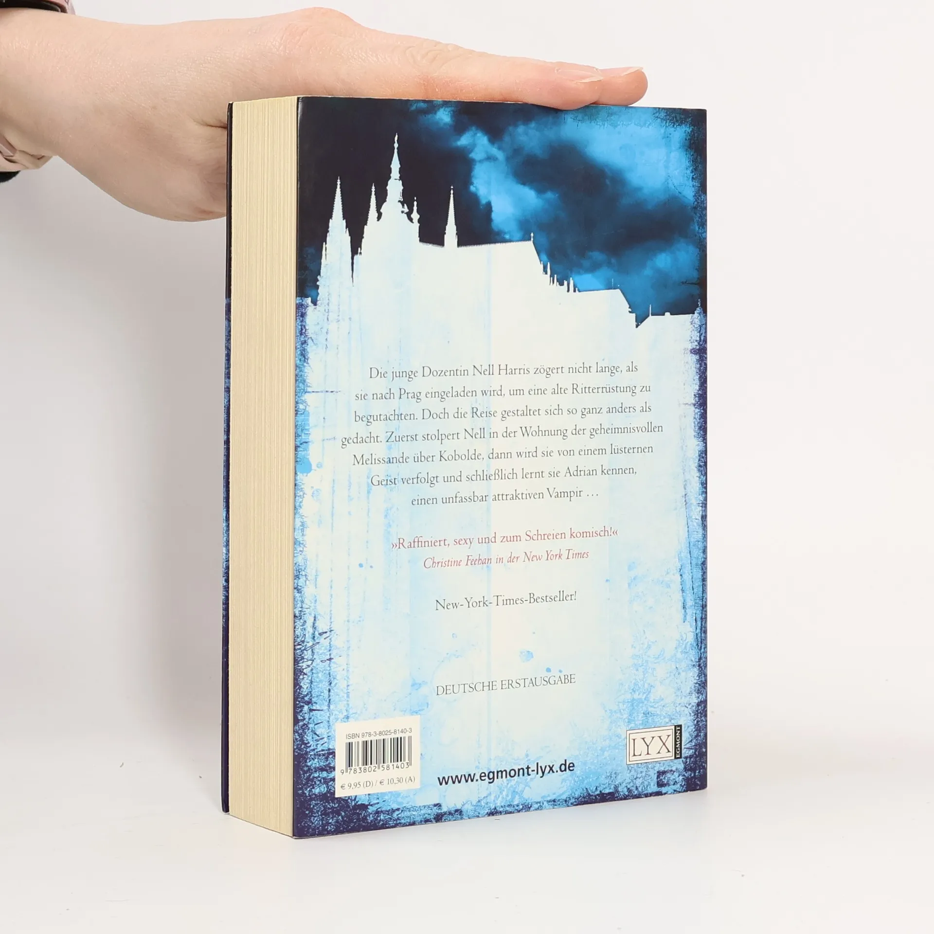 Die junge Dozentin Nell Harris zögert nicht lange, als sie nach Prag eingeladen wird, um eine alte Ritterrüstung zu begutachten. Doch die Reise gestaltet sich so ganz anders als gedacht. Zuerst stolpert Nell in der Wohnung der geheimnisvollen Melissande über Kobolde, dann wird sie von einem lüsternen Geist verfolgt und schließlich lernt sie Adrian kennen, einen unfassbar attraktiven Vampir ... Erstklassige Mischung aus Humor, Erotik und Mystery! Riesenerfolg in den USA, New-York-Times-Bestseller! „Raffiniert, sexy und zum Schreien komisch!“ Christine Feehan in der New York Times