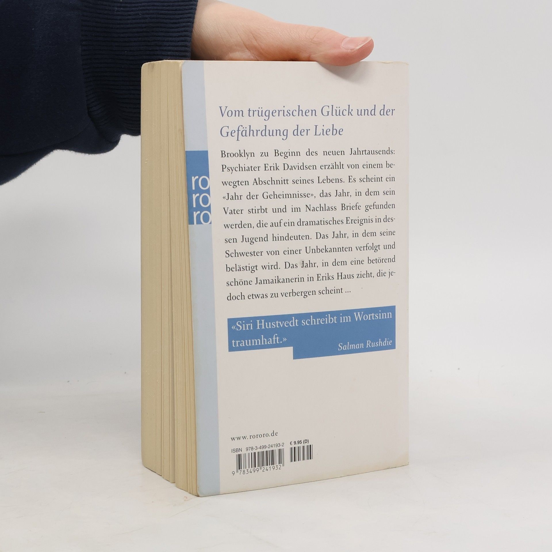 Vom trügerischen Glück und der Gefährdung der Liebe Brooklyn zu Beginn des neuen Jahrtausends: Psychiater Erik Davidsen erzählt von einem bewegten Abschnitt seines Lebens. Es scheint ein «Jahr der Geheimnisse», das Jahr, in dem sein Vater stirbt und im Nachlass Briefe gefunden werden, die auf ein dramatisches Ereignis in dessen Jugend hindeuten. Das Jahr, in dem seine Schwester von einer Unbekannten verfolgt und belästigt wird. Das Jahr, in dem eine betörend schöne Jamaikanerin in Eriks Haus zieht, die jedoch etwas zu verbergen scheint ...«Siri Hustvedt schreibt im Wortsinn traumhaft.» Salman Rushdie