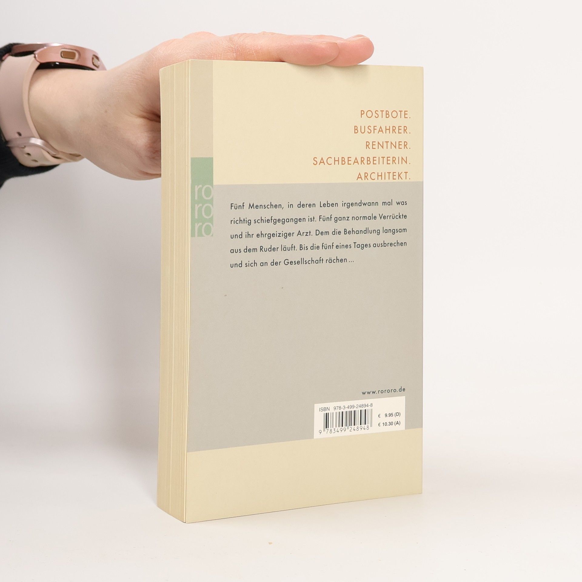 Postbote. Busfahrer. Rentner. Sachbearbeiterin. Architekt. Fünf Menschen, in deren Leben irgendwann mal was richtig schiefgegangen ist. Fünf ganz normale Verrückte und ihr ehrgeiziger Arzt. Dem die Behandlung langsam aus dem Ruder läuft. Bis die fünf eines Tages ausbrechen und sich an der Gesellschaft rächen ...