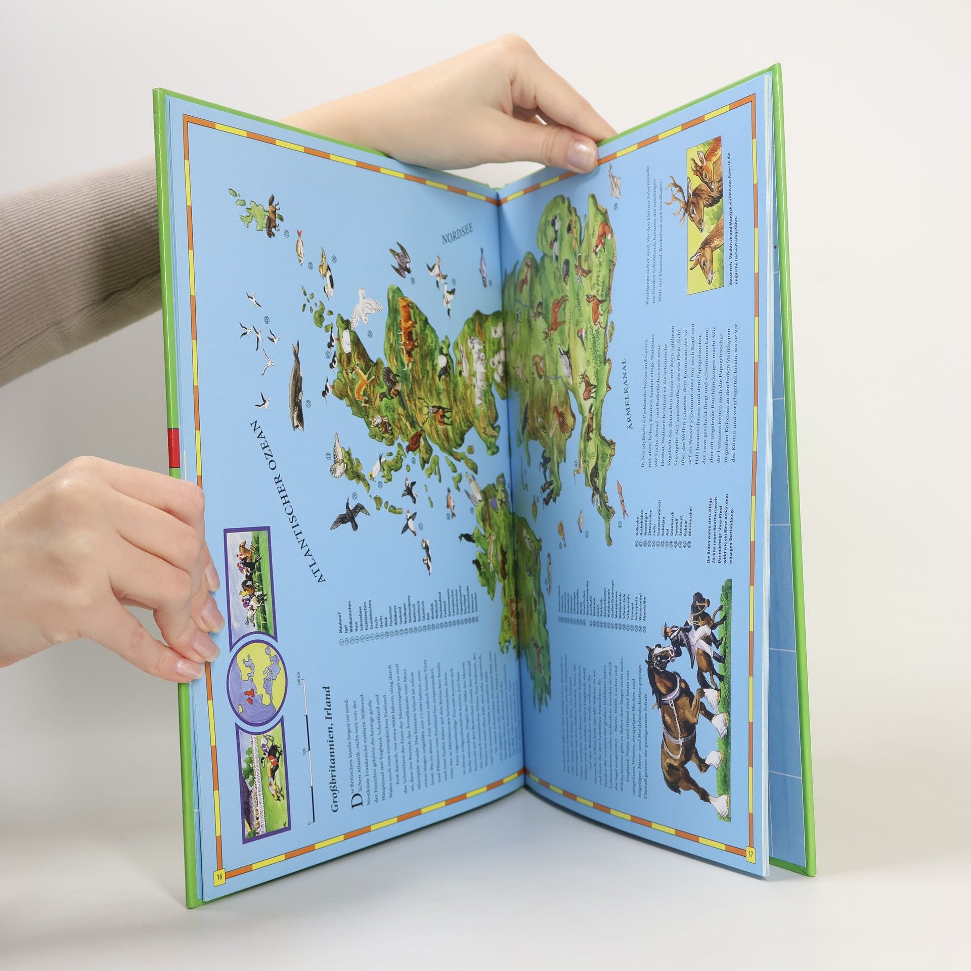 Tiere aller Kontinente, ihre Lebensräume und ihr Verhalten, dazu auf jeder Doppelseite Infos zu Berufen mit Tieren. Mit diesem komplett neu erstellten, von Fachautoren verfassten und reich illustrierten Atlas lernen Kinder die Welt, in der sie leben, kennen und verstehen. Kindgerechte Karten mit vielen Bilddetails und Schummerung bieten Mädchen und Jungen im Grundschulalter einen visuellen Einstieg ins Thema. Kurze Texte, naturgetreue Illustrationen sowie ein Wissensquiz vertiefen die kartografischen Informationen