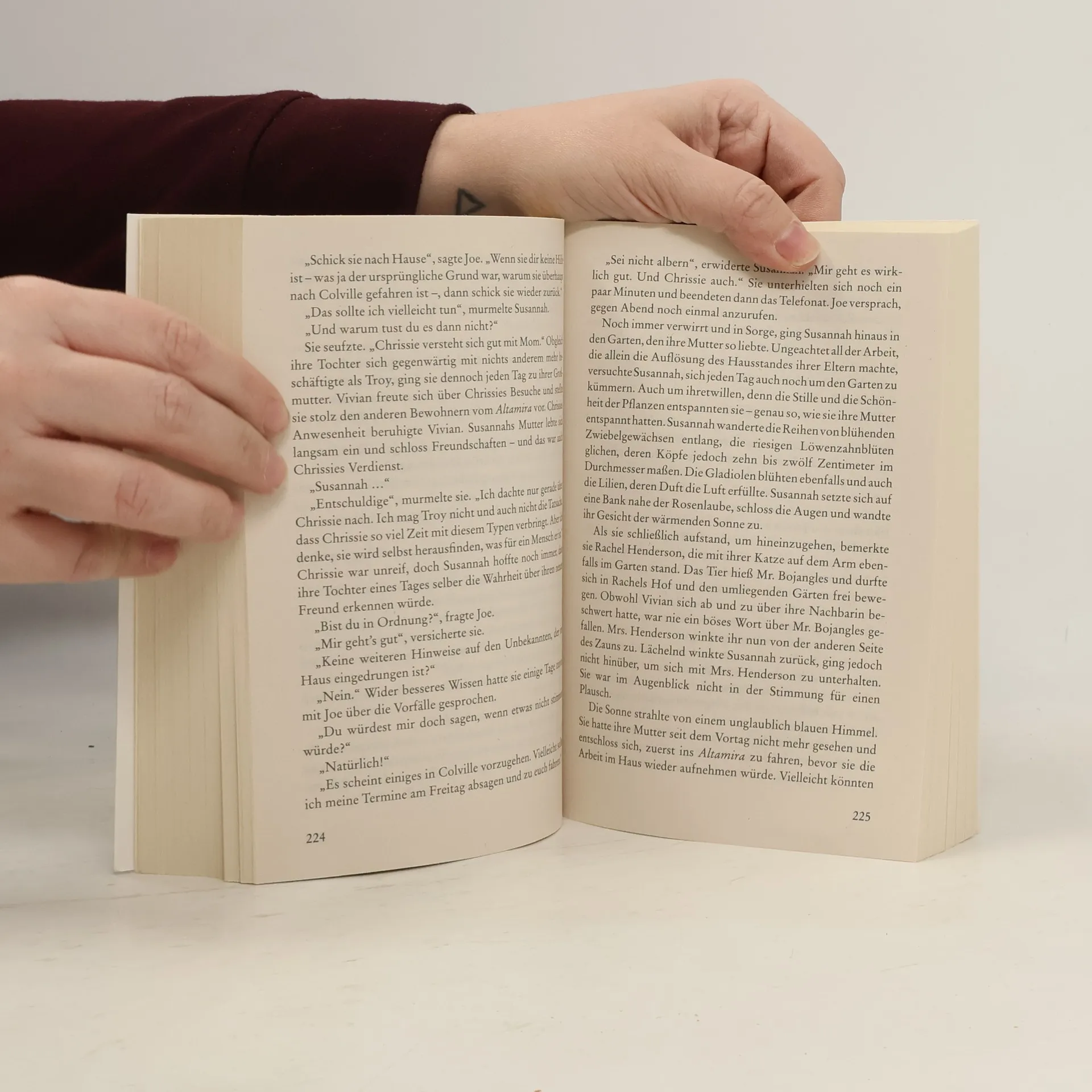 Schritt für Schritt ist Susannah bisher ihren Lebensweg gegangen: Ehefrau, Mutter, Beruf. Bis sie aus Sorge um ihre kranke Mutter Vivian in die kleine Stadt zurückkehrt, in der sie aufgewachsen ist. Sie muss schwere Entscheidungen treffen. Was soll mit Vivian, was mit dem Elternhaus passieren? Dabei werden alte Erinnerungen wach, an den strengen Vater, den tödlich verunglückten Bruder und an ihre erste große Liebe Jake. Erst zaghaft, dann immer drängender wächst in Susannah der Wunsch, Jake wiederzusehen und vielleicht sogar einen Schritt auf einem anderen Weg durch den Garten des Lebens zu wagen.