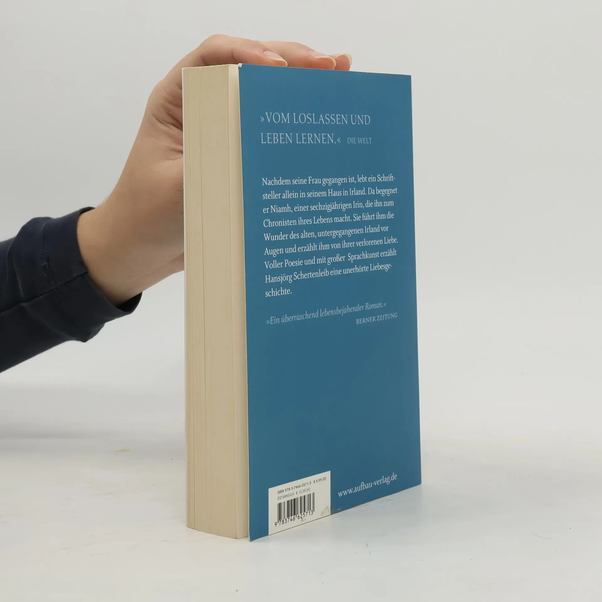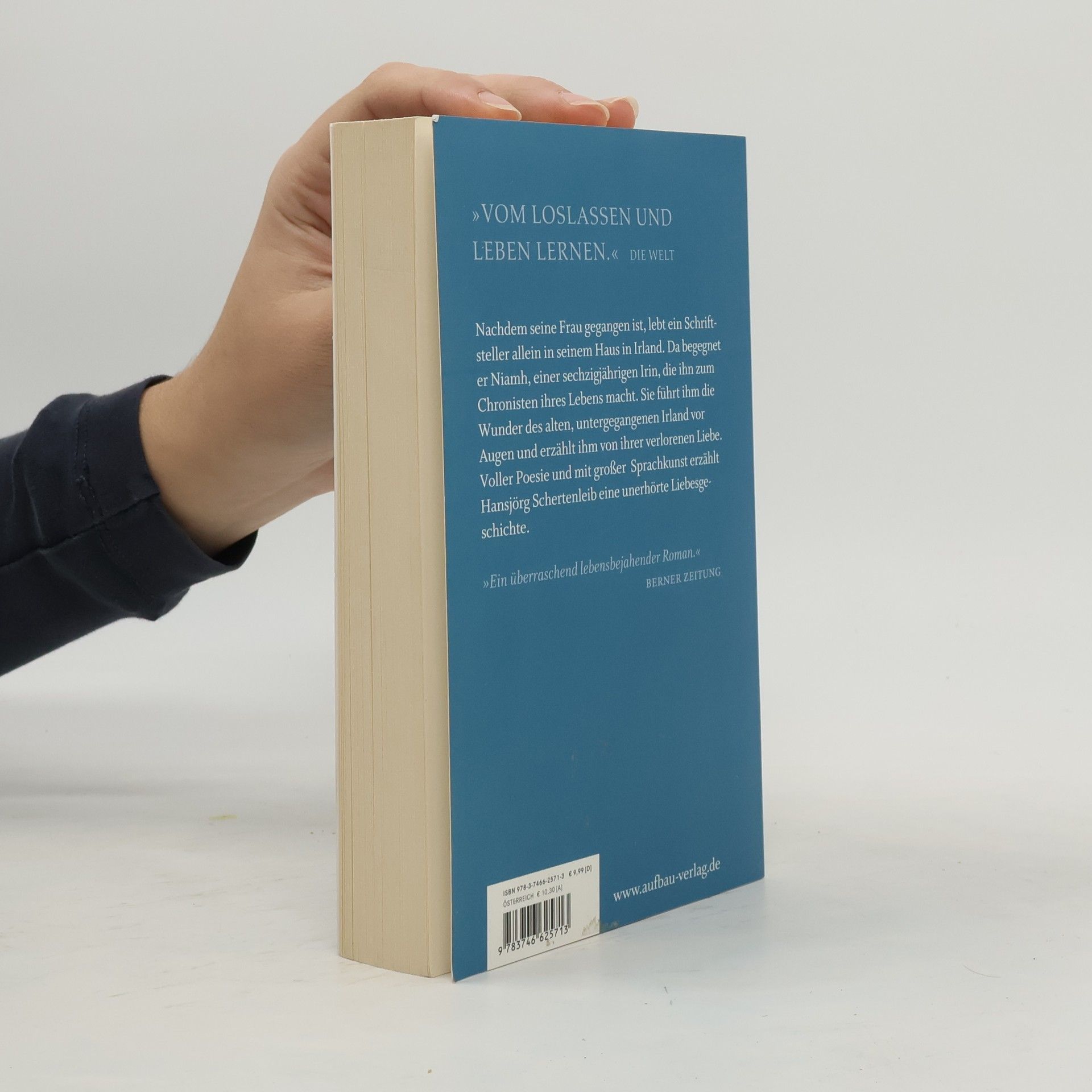 „Vom Loslassen und Leben lernen.“ Die Welt Nachdem seine Frau gegangen ist, lebt ein Schriftsteller allein in seinem Haus in Irland. Da begegnet er Niamh, einer sechzigjährigen Irin, die ihn zum Chronisten ihres Lebens macht. Sie führt ihm die Wunder des alten, untergegangenen Irland vor Augen und erzählt ihm von ihrer verlorenen Liebe. Voller Poesie und mit großer Sprachkunst erzählt Hansjörg Schertenleib eine unerhörte Liebesgeschichte. „Ein überraschend lebensbejahender Roman.“ Berner Zeitung