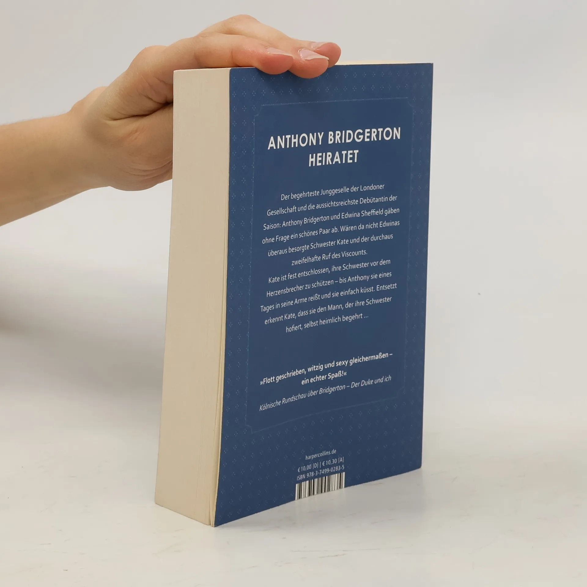 Anthony Bridgerton heiratet Der begehrteste Junggeselle der Londoner Gesellschaft und die aussichtsreichste Debütantin der Saison: Lord Anthony Bridgerton und Edwina Sheffield gäben ohne Frage ein schönes Paar ab. Wären da nicht Edwinas überaus besorgte Schwester Kate und der durchaus zweifelhafte Ruf des Lords. Kate ist fest entschlossen, ihre Schwester vor dem Herzensbrecher zu schützen – bis der Viscount sie eines Tages in seine Arme reißt und sie einfach küsst. Entsetzt erkennt Kate, dass sie den Mann, der ihre Schwester hofiert, selbst heimlich begehrt … »Wahrhaft die Jane Austen der Gegenwart.« Bestsellerautorin Jill Barnett