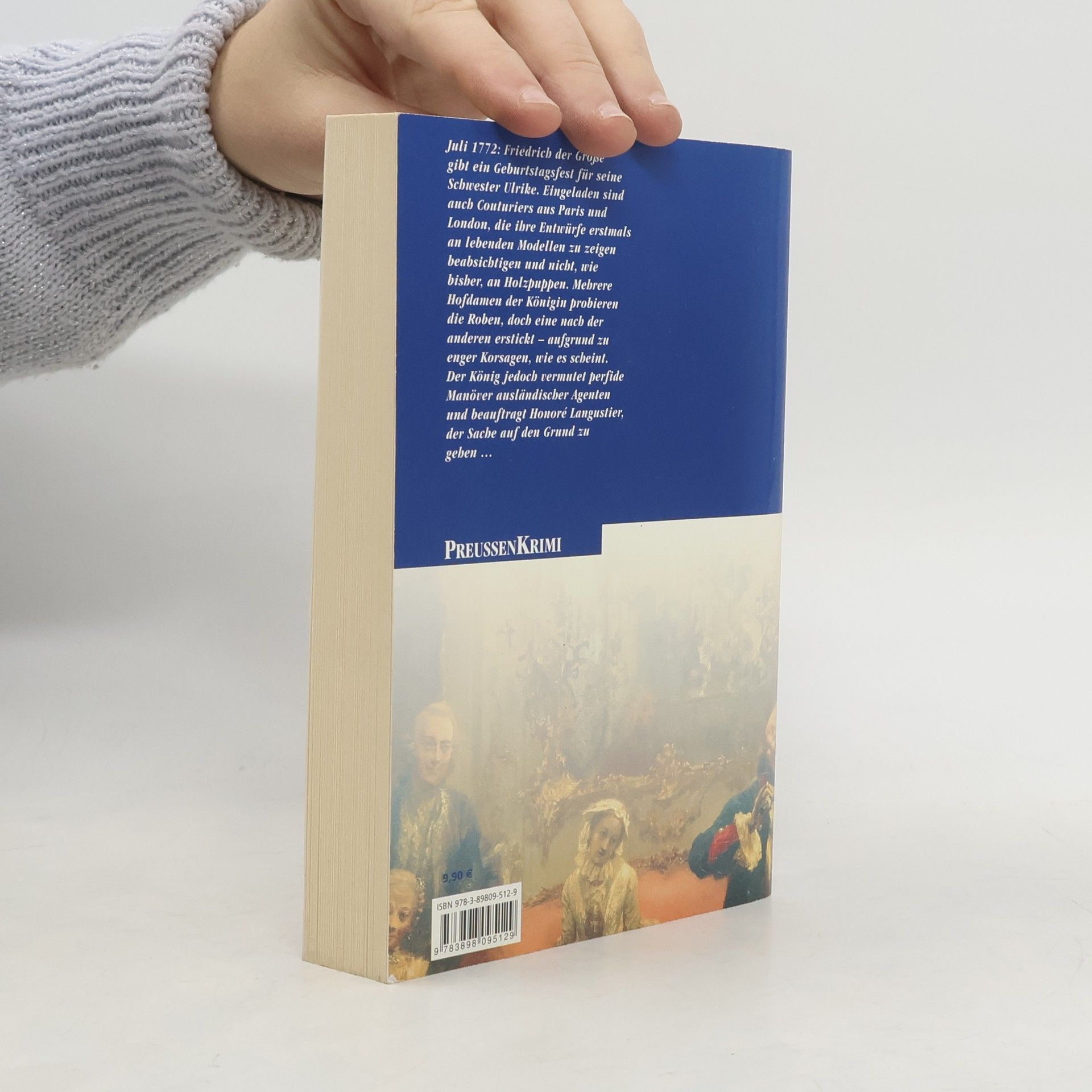 Juli 1772: Friedrich der Große gibt ein Geburtstagsfest für seine Schwester Ulrike. Eingeladen sind auch Couturiers aus Paris und London, die ihre Entwürfe erstmals an lebenden Modellen zu zeigen beabsichtigen. Mehrere Hofdamen der Königin probieren die Roben, doch eine nach der anderen erstickt - aufgrund zu enger Korsagen, wie es scheint. Der König jedoch vermutet perfide Manöver ausländischer Agenten und beauftragt Honoré Langustier, der Sache auf den Grund zu gehen. „Wolf spielt gekonnt mit Stil und Tradition historischer Romane. Ein echter Glücksfall.“ taz