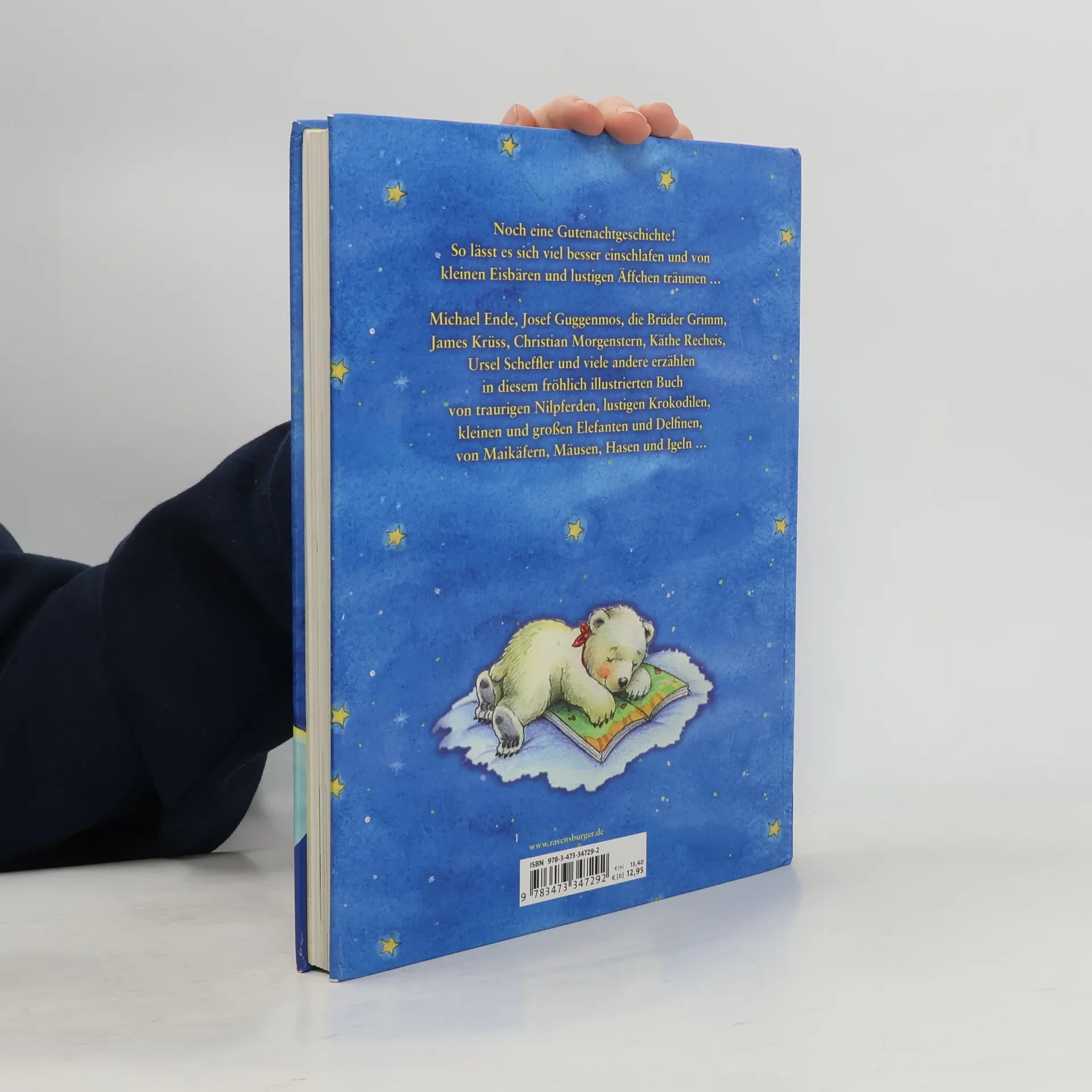 Kinder brauchen Geschichten, vor allem vor dem Schlafengehen. Michael Ende, Josef Guggenmos, die Brüder Grimm, James Krüss, Christian Morgenstern und viele andere erzählen in diesem fröhlich illustrierten Buch von traurigen Nilpferden, lustigen Krokodilen, kleinen und großen Elefanten und Delfinen, von Maikäfern, Mäusen und Hasen und Igeln.