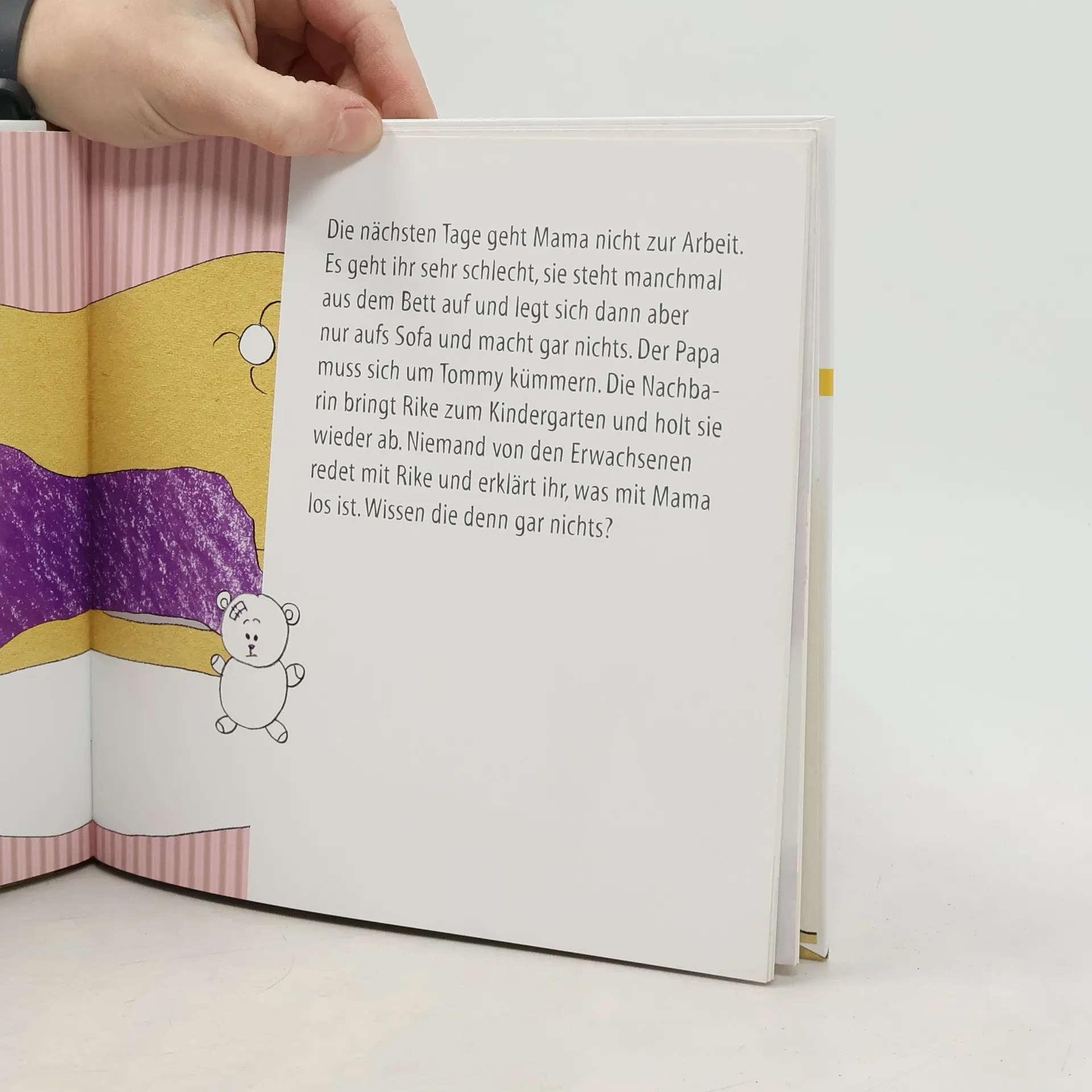 Ein Depressions-Monster, das Gefühle klaut, ja gibt´s denn so was? Seit Rieke weiß, was mit Mama los ist, geht es ihr gleich besser. Dieses zauberhafte Bilderbuch ist das erste, dass es Eltern, Großeltern und Erzieherinnen ermöglicht, kleinen Kindern zu erklären, was eine Depression ist. »Mama, bist du böse auf mich?« will die kleine Rieke von ihrer Mutter wissen, die seit Tagen nur noch müde im Bett oder auf dem Sofa liegt und keine Lust zum Spielen hat. Rieke ist traurig und fühlt sich schuldig, weil sie denkt, sie hat was falsch gemacht. Mit einfühlsamer Sprache und wunderbar zarten Bildern hat Erdmute von Mosch ein Buch gestaltet, dass 3-6jährigen Kindern die Krankheit Depression verständlich macht und erklärt, dass Traurigkeit und Rückzug Symptome einer Krankheit sind und mit Geduld und Hilfe von Ärzten und Therapeuten behandelt werden können.