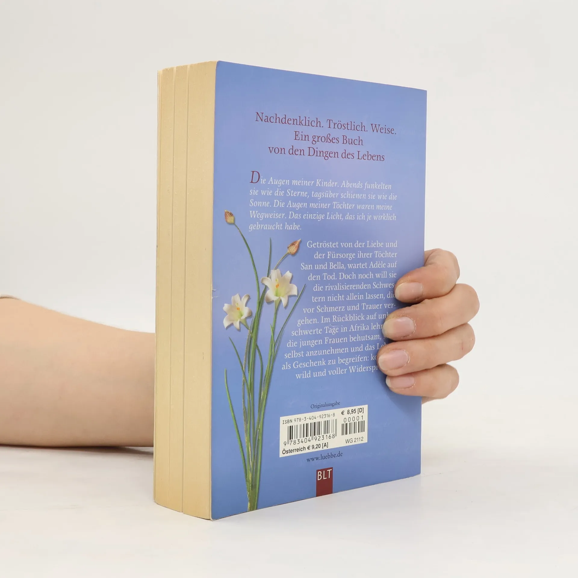 Die Augen meiner Kinder. Abends funkelten sie wie die Sterne, tagsüber schienen sie wie die Sonne. Die Augen meiner Töchter waren meine Wegweiser. Das einzige Licht, das ich je wirklich gebraucht habe. Getröstet von der Liebe und der Fürsorge ihrer Töchter San und Bella, wartet Adèle auf den Tod. Doch noch will sie die rivalisierenden Schwestern nicht allein lassen, die vor Schmerz und Trauer vergehen. Im Rückblick auf unbeschwerte Tage in Afrika lehrt sie die jungen Frauen behutsam, sich selbst anzunehmen und das Leben als Geschenk zu begreifen: kostbar, wild und voller Widersprüche.