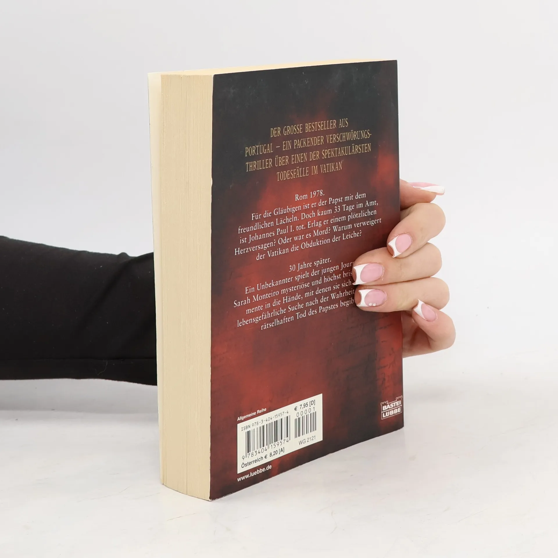 Rom 1978. Für die Gläubigen ist er der Papst mit dem freundlichen Lächeln. Doch kaum 33 Tage im Amt, ist Johannes Paul I. tot. Erlag er einem plötzlichen Herzversagen? Oder war es Mord? Warum verweigert der Vatikan die Obduktion der Leiche? 30 Jahre später. Ein Unbekannter spielt der jungen Journalistin Sarah Monteiro mysteriöse und höchst brisante Dokumente in die Hände, mit denen sie sich auf die lebensgefährliche Suche nach der Wahrheit über den rätselhaften Tod des Papstes begibt.