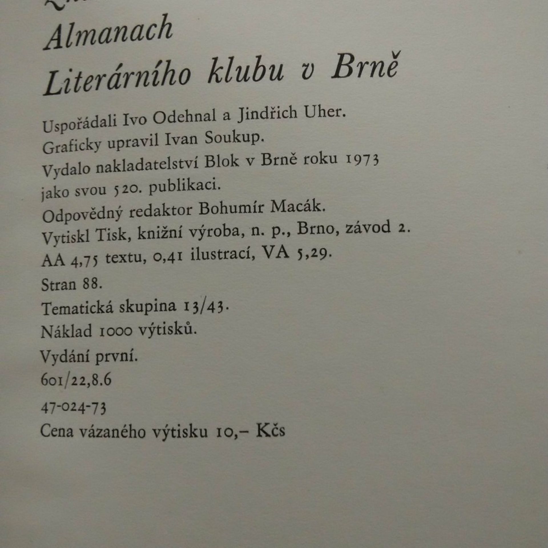 Znamení krajiny - Almanach literárního klubu v Brně (Ocpl, 88 s.), Kostrhun Kříž ad.