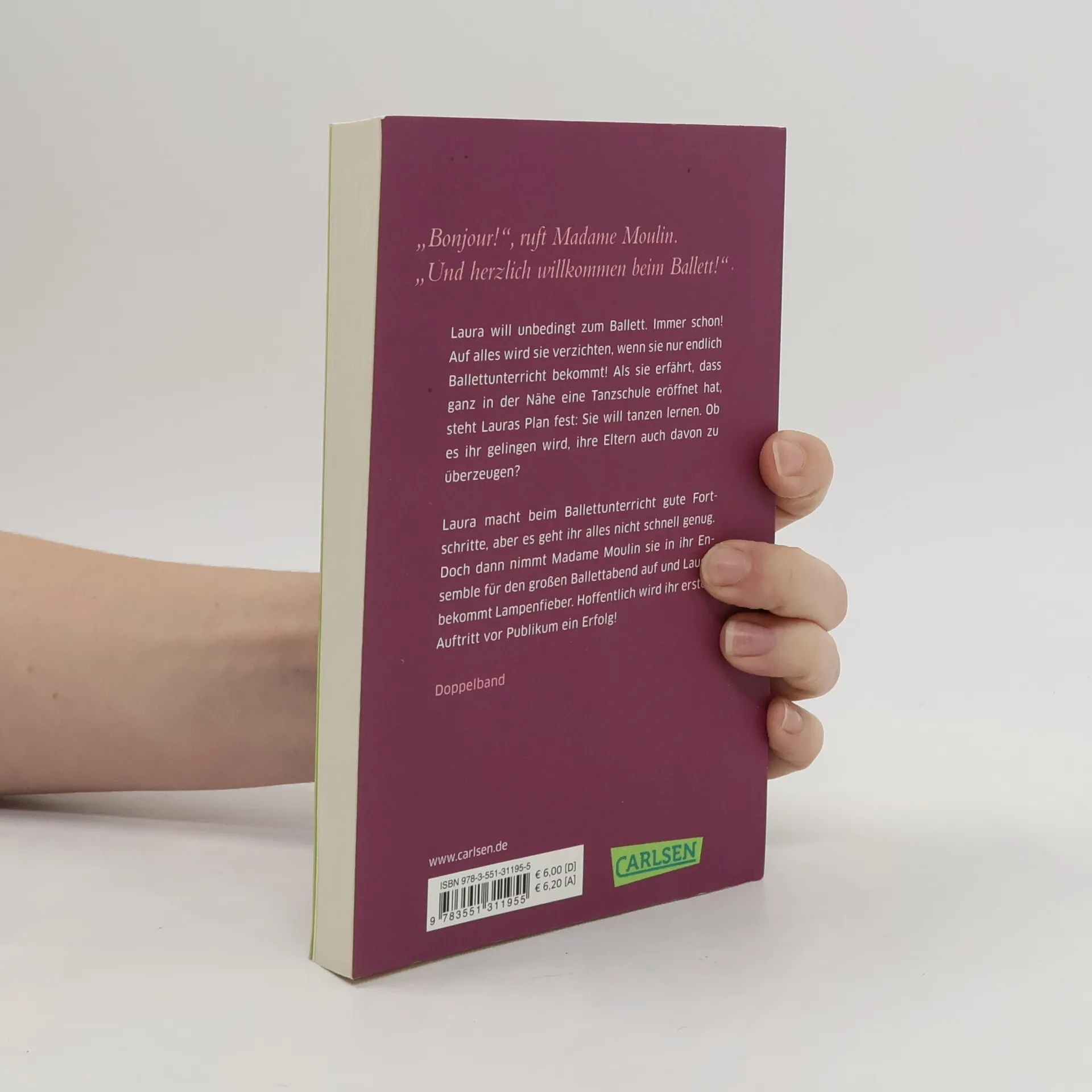 Laura will unbedingt zum Ballett. Als sie erfährt, dass ganz in der Nähe eine Tanzschule eröffnet hat, überredet sie ihre Eltern, sie dort anzumelden. Die Leiterin der Ballettschule, eine ehemalige Solotänzerin, erkennt schon bald, dass Laura neben einer großen Portion Talent auch über ungewöhnliche Disziplin verfügt und nimmt das Mädchen in ihre Anfängerklasse auf. Der erste Band einer neuen Reihe für Mädchen, die sich für das Thema Ballett interessieren. Mit einem kleinen Ballettlexikon im Anhang.
