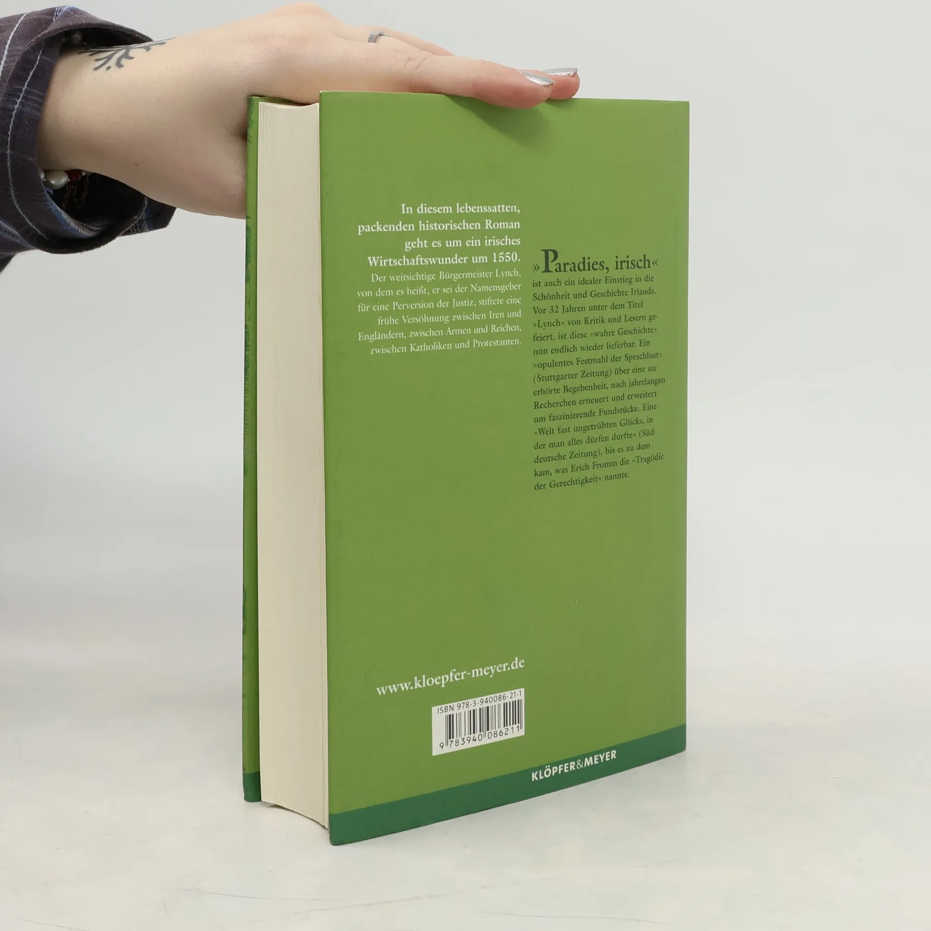 Dieser Roman erzählt den denkwürdigen historischen Fall eines irischen Wirtschaftswunders um 1550. Vor 32 Jahren unter dem Titel »Lynch« von Lesern und Rezensenten gefeiert, ist das Buch nun endlich wieder lieferbar, ist nach jahrelangen Recherchen erneuert und erweitert um wesentliche Fundstücke, »eine im wahrsten Sinne des Wortes sinnenreiche Angelegenheit«, so seinerzeit der WDR. Lodemann erzählt »in sinnlich deftiger Sprache«. Da öffne sich, fand die Kritik 1976, »ein irisches Schlaraffenland, in dem es sich lesend wohl sein lässt wie schon lange nicht mehr«. Der Philosoph und Psychoanalytiker Erich Fromm bekundete, alles »sei so anschaulich, dass man sich bei diesen Festen gegenwärtig fühlt«, die Stuttgarter Zeitung las ein »opulentes Festmahl der Sprachlust «, die Süddeutsche eine »Welt fast ungetrübten Glücks«, wo man »alles dürfen durfte«, bis es dann zu dem kam, was Erich Fromm eine »Tragödie der Gerechtigkeit« nannte. »Paradies, irisch« erzählt den verblüffend aktuellen Fall einer frühen Versöhnung in der Terrorgeschichte zwischen Engländern und Iren, Katholiken und Protestanten - unter dem weitsichtigen Bürgermeister Lynch, von dem es heißt, er sei der unselige Namensgeber für eine Perversion der Justiz. Ein idealer Einstieg in die Schönheit und Geschichte Irlands. Sprachmächtig zieht einen diese Erzählung durch »eine unerhörte Begebenheit«. »Eine Tragödie der Gerechtigkeit.« Erich Fromm