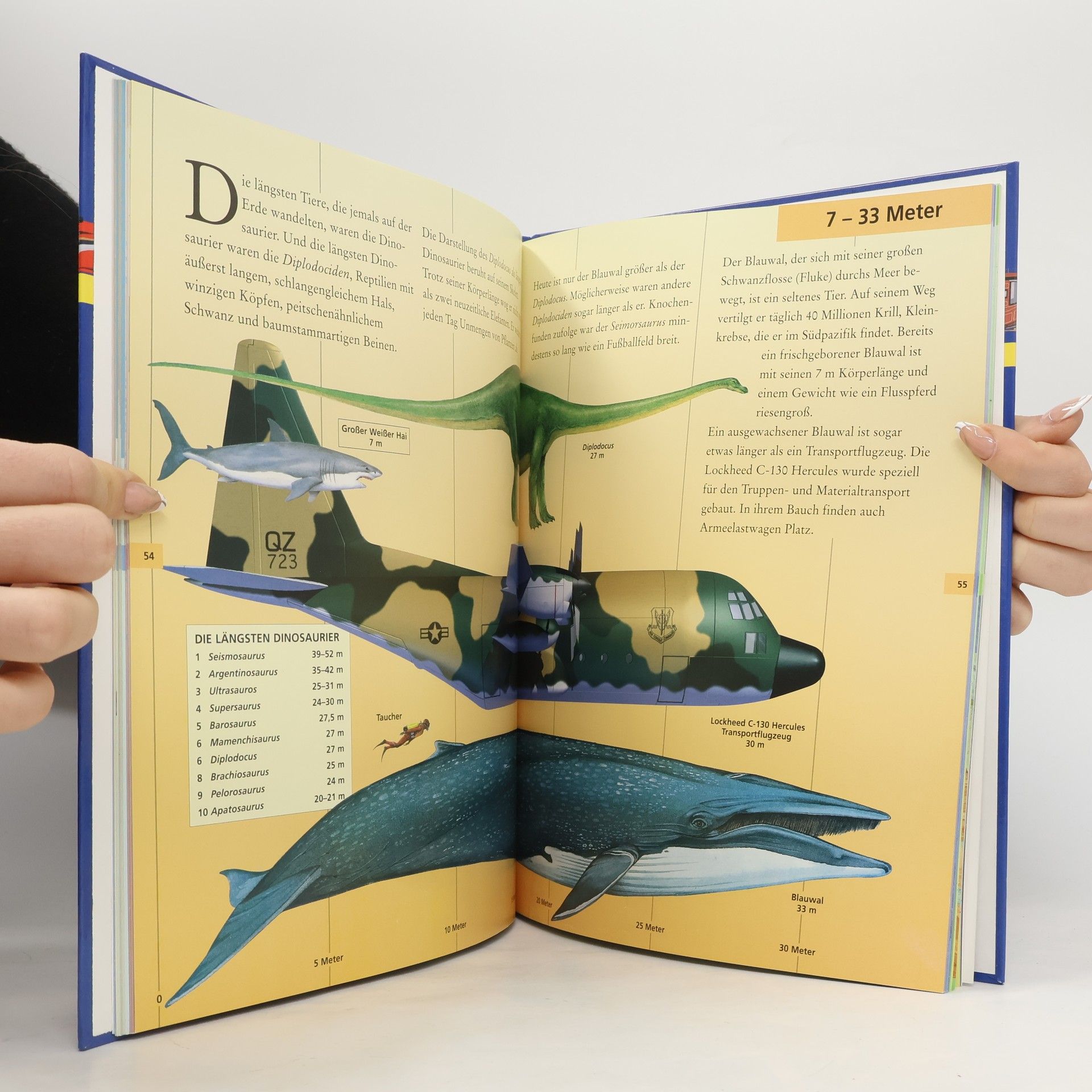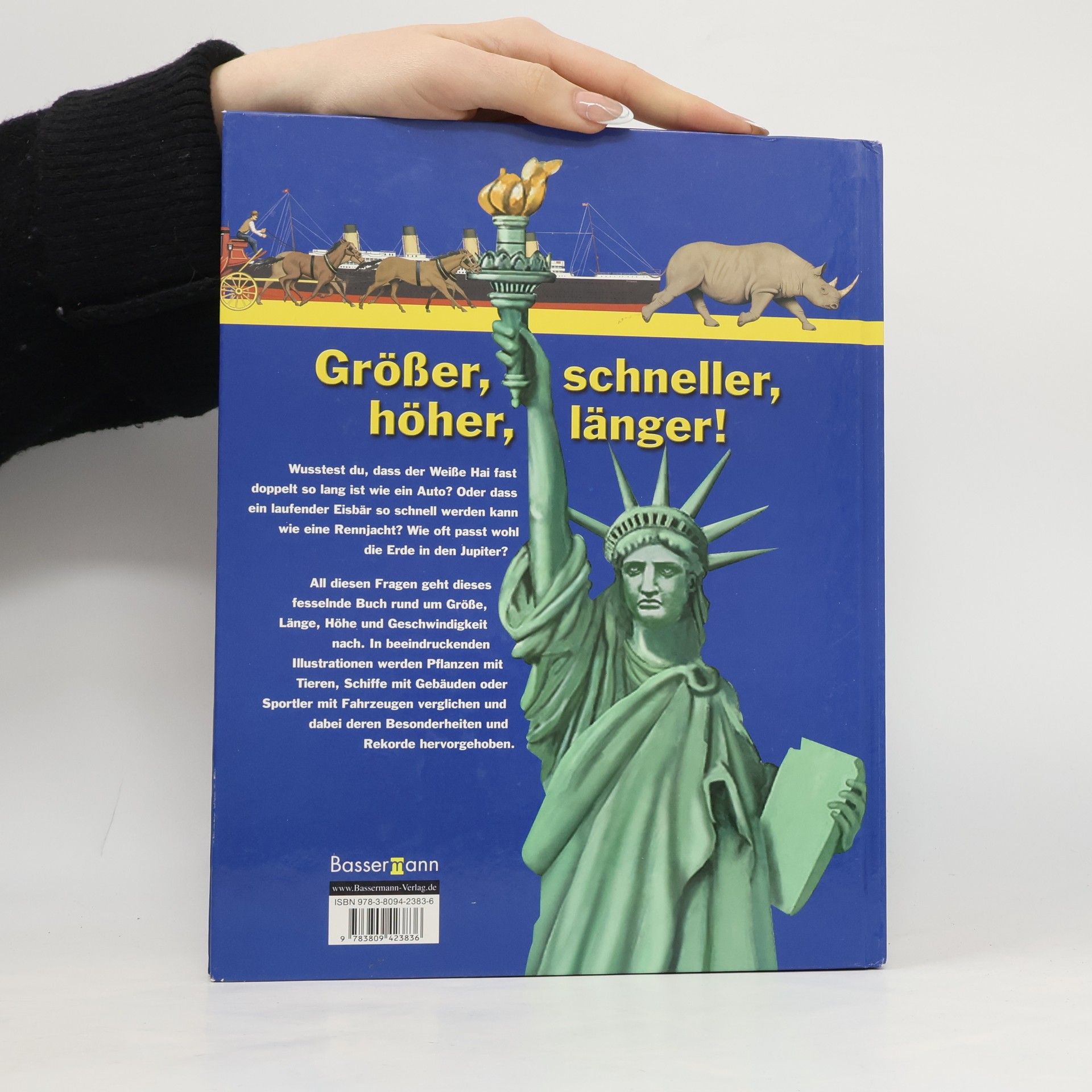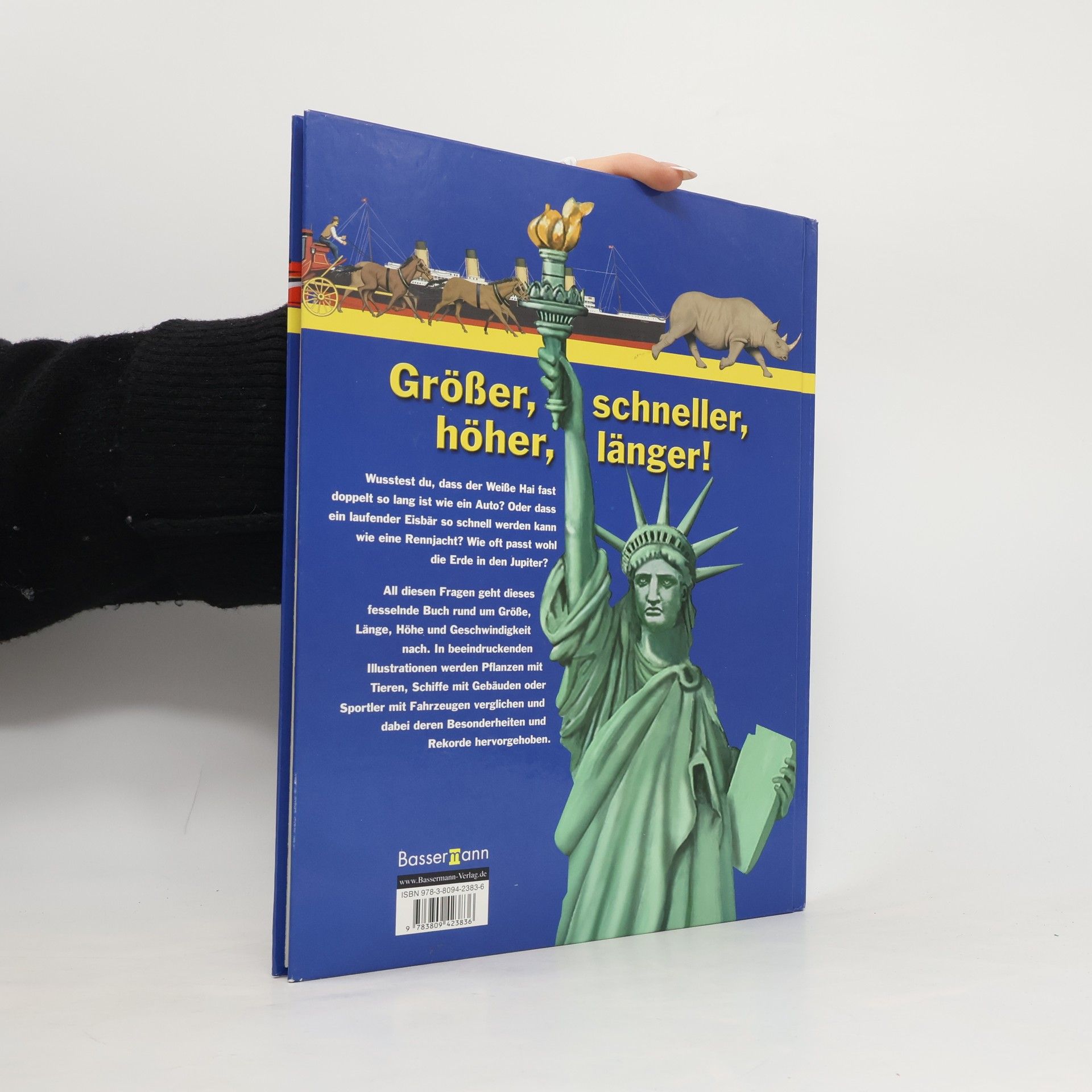 Größer, schneller, höher Kaum zu glauben! Der Weiße Hai ist fast doppelt so lang ist wie ein Auto. Ein Eisbär ist in der Lage, eine Rennjacht hinter sich zu lassen. Und die Erde passt mehr als 1300-mal in den Jupiter. Dieses fesselnde Buch präsentiert erstaunliche Fakten rund um Geschwindigkeit, Länge, Höhe und Masse. In beeindruckenden Illustrationen werden Pflanzen mit Tieren, Schiffe mit Gebäuden oder Sportler mit Fahrzeugen verglichen und dabei deren Besonderheiten und Rekorde hervorgehoben.