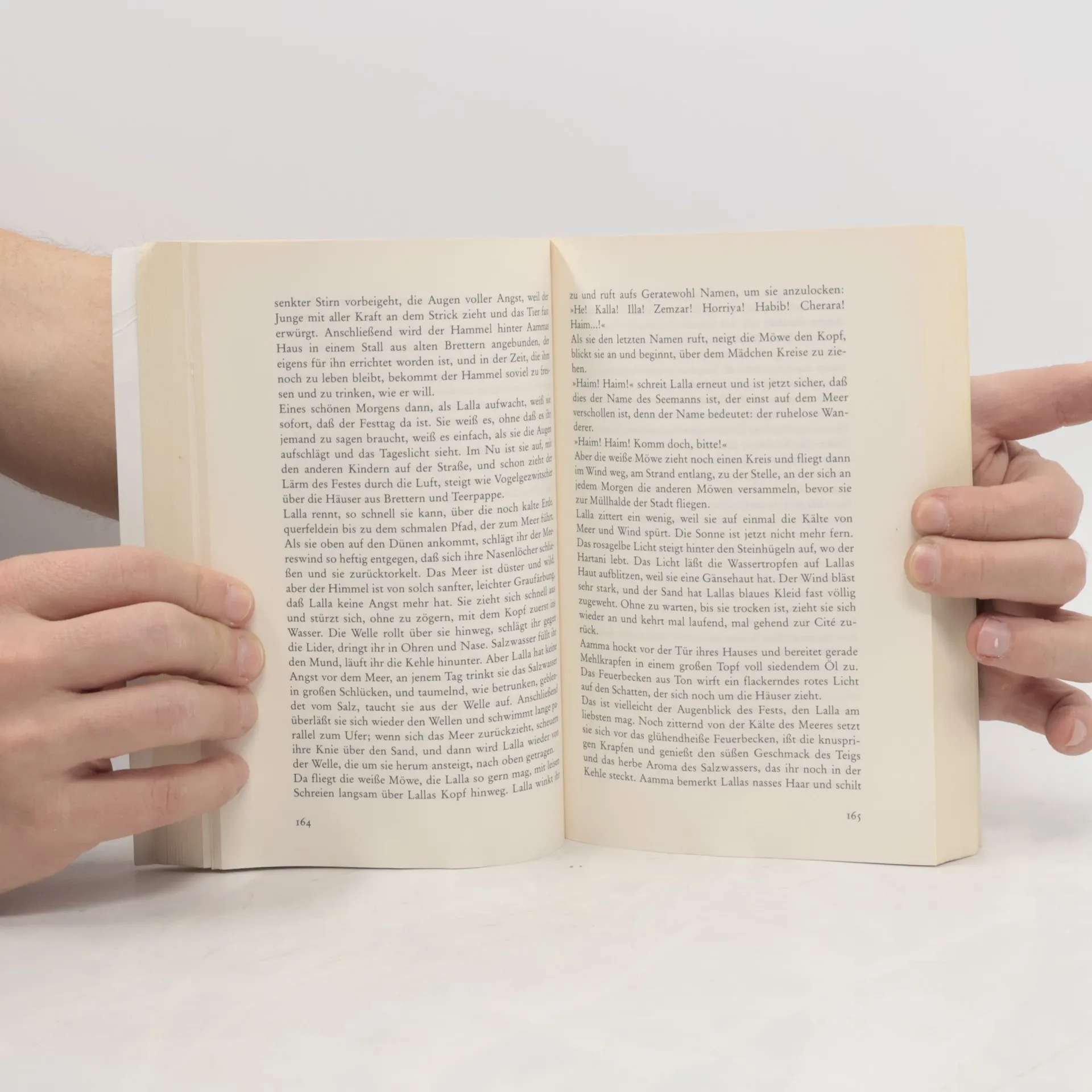 Die Sonne und der Wind, die karge Schönheit der Wüste – das ist das Leben Lallas. Nach dem Tod ihrer Mutter lebt die junge Marokkanerin in den Slums einer Küstenstadt bei ihrer Tante. Ihre Zeit verbringt sie am Strand oder am Wüstensaum, wo sie Tiere und Pflanzen beobachtet. Der stumme Hirte Hartani ist ihr vertrauter Begleiter. Immer wieder träumt Lalla von den blauen Männern, den Tuareg, deren Geschichten sie geprägt haben. Als sie mit einem ungeliebten Mann verheiratet werden soll, flieht sie nach Marseille und arbeitet in einem billigen Hotel. Das Elend der nordafrikanischen Einwanderer und die Brutalität der Großstadt machen ihr bewusst, dass sie ein Kind der Wüste ist. Auch als ein Fotograf ihre Bilder veröffentlicht, will sie nicht in Marseille bleiben. Sie kehrt in ihre Heimat zurück, wo sie sich den blauen Männern näher fühlt. Dort bringt sie das Kind zur Welt, das sie von Hartani erwartet. Der Autor kontrastiert kunstvoll die Schönheit der Sahara mit der „Wüste“ Marseille und verknüpft die Geschichte der Tuareg mit Lallas. Die Ursprünglichkeit Lallas, die fremdartige Kultur der Tuareg, die zauberhaften Naturbeschreibungen und die poetische Sprache fesseln den Leser. Für dieses Werk wurde der Autor mit dem Prix Morand der Académie française ausgezeichnet.