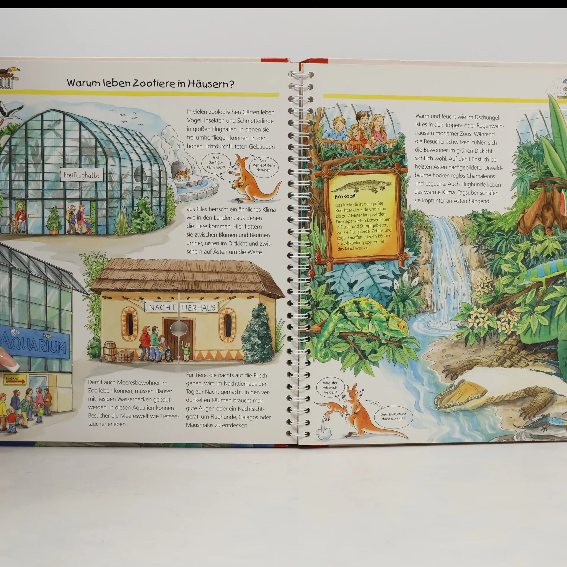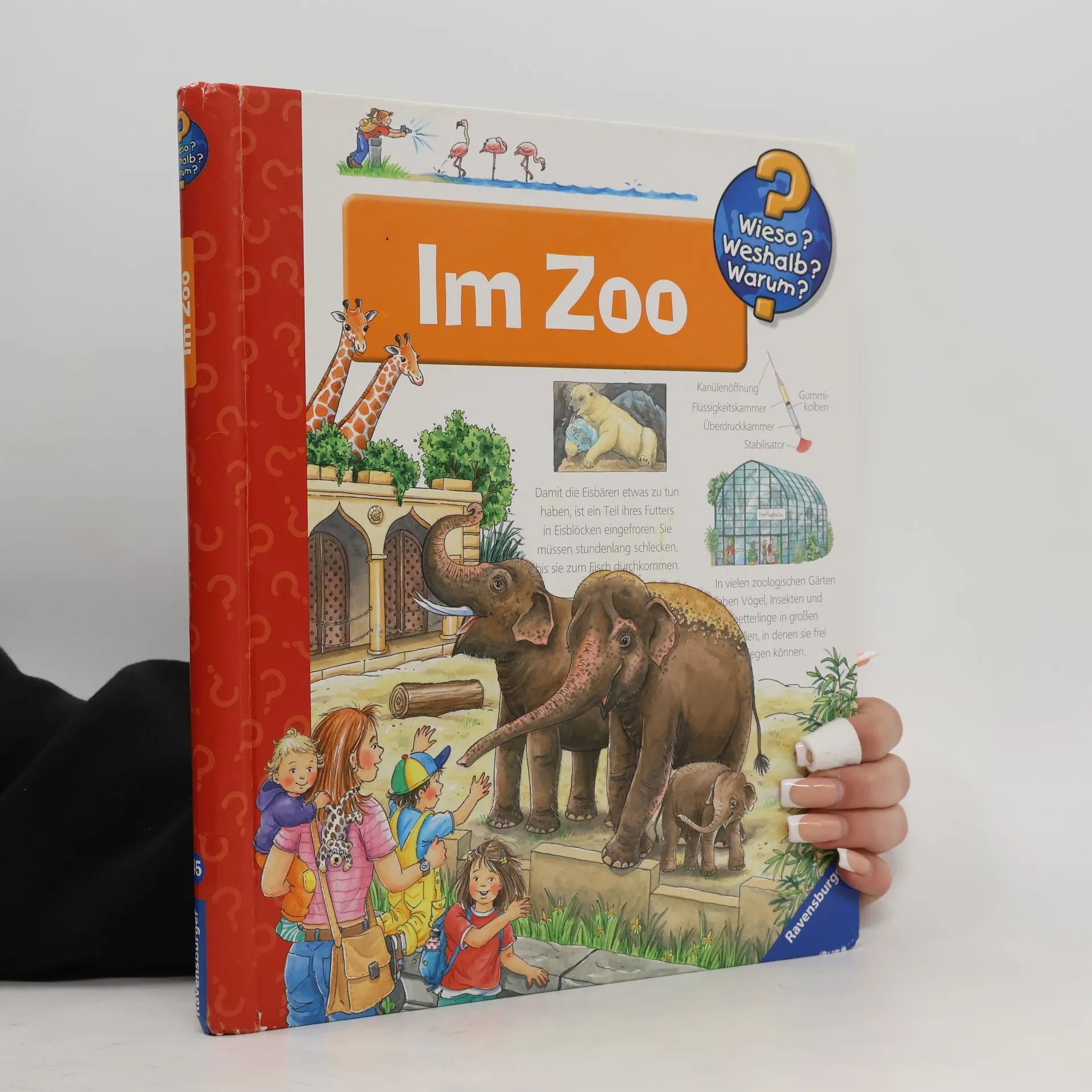 Hier ist tierisch was los! Ein Besuch im Zoo oder Tierpark ist für viele Kinder ein Highlight. Hier können sie Tiere aus aller Welt wie Elefanten, Giraffen und Seehunde aus nächster Nähe beobachten. Im Buch zeigen Klappen und detailreiche Bilder, dass Löwen gern auf beheizten Flächen liegen und warum das Wasser im Flusspferdbecken laufend gereinigt werden muss. Kinder schauen unter anderem dem Tierpfleger und dem Tierarzt bei ihrer Arbeit über die Schulter. So sind sie hautnah dran am Zooalltag! Wieso? Weshalb? Warum? Die Sachbuchreihe für Kinder von 4–7 Jahren Jeden Tag entdecken Kinder etwas Neues – da kommen viele Fragen auf. Warum sind die Dinosaurier ausgestorben? Wo ist die Sonne in der Nacht? Wozu brauchen wir das Blut? Die beliebte Sachbuchreihe Wieso? Weshalb? Warum? gibt Kindern Antworten auf Augenhöhe. Dabei werden die unterschiedlichsten Themen aus der Alltags- und Interessenswelt der Kinder altersgerecht und mit viel Liebe zum Detail unter die Lupe genommen. Detailreiche Bilder, verständliche Sachtexte und überraschende Klappen, die Bewegungen oder Abläufe veranschaulichen und hinter die Dinge blicken lassen, ermöglichen Kindern, sich ihre Themen selbst zu erschließen. Der Spaß am eigenhändigen Entdecken, die liebevolle Umsetzung und die qualitativ hochwertige Ausstattung garantieren langanhaltende Freude an jedem einzelnen Buch.