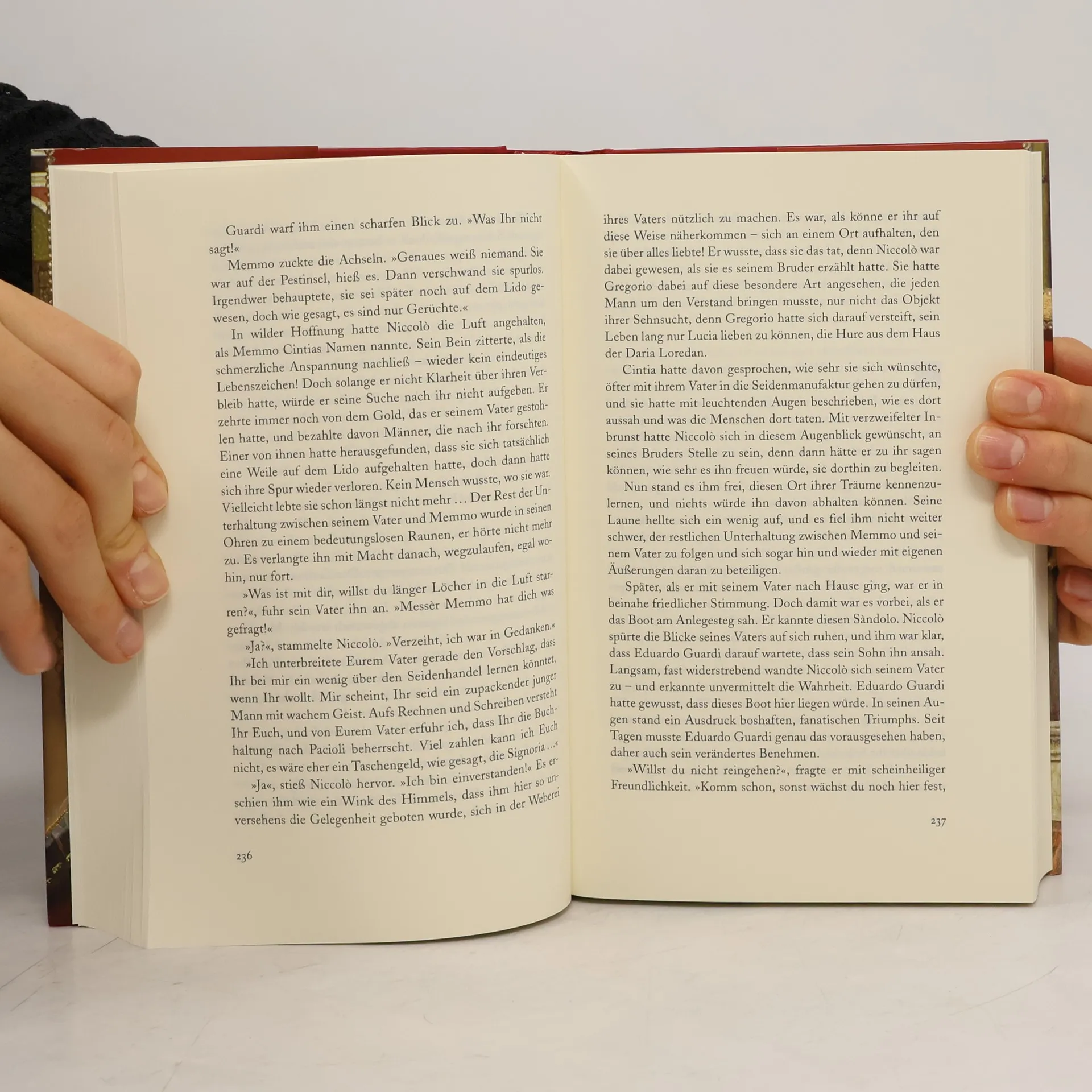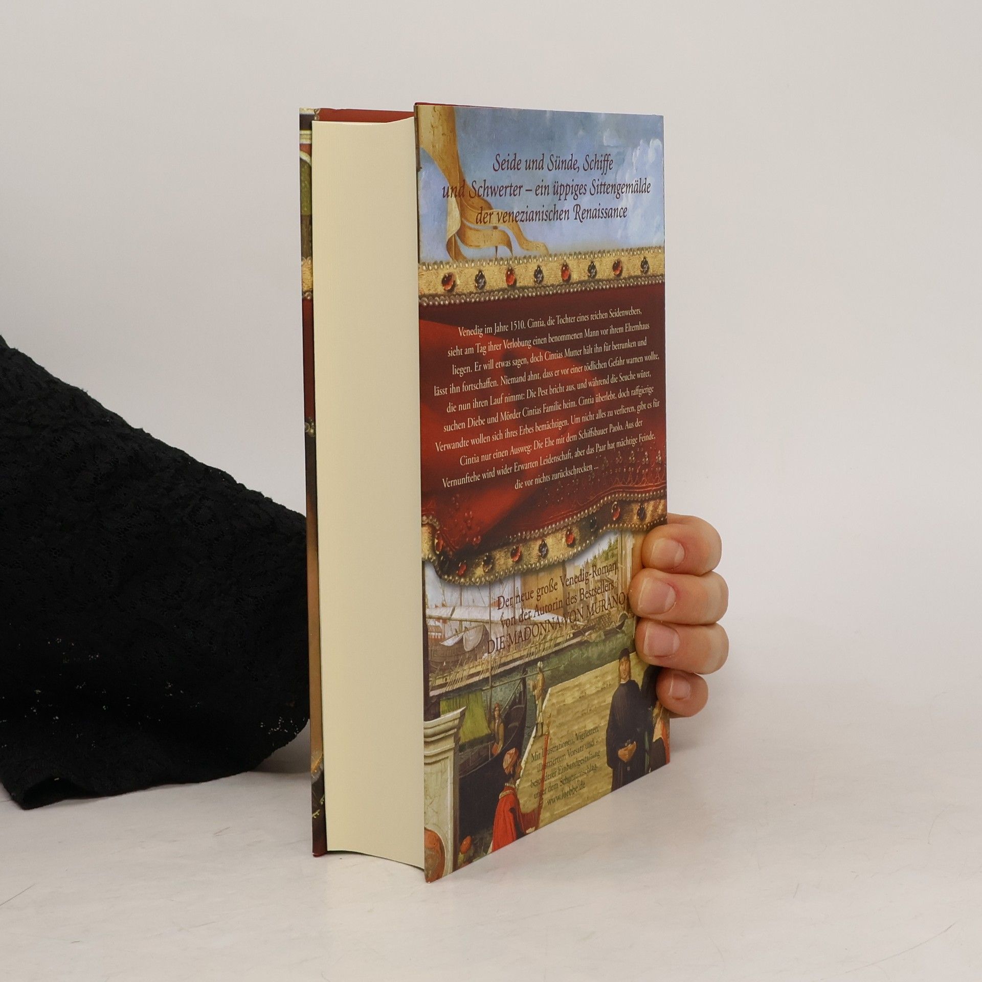 Venedig im Jahre 1510. Cintia, die Tochter eines reichen Seidenwebers, sieht am Tag ihrer Verlobung einen benommenen Mann vor ihrem Elternhaus liegen. Er will etwas sagen, doch Cintias Mutter hält ihn für betrunken und lässt ihn fortschaffen. Niemand ahnt, dass er vor einer tödlichen Gefahr warnen wollte, die nun ihren Lauf nimmt: Die Pest bricht aus, und während die Seuche wütet, suchen Diebe und Mörder Cintias Familie heim. Cintia überlebt, doch raffgierige Verwandte wollen sich ihres Erbes bemächtigen. Um nicht alles zu verlieren, gibt es für Cintia nur einen Ausweg: Die Ehe mit dem Schiffsbauer Paolo. Aus der Vernunftehe wird wider Erwarten Leidenschaft, aber das Paar hat mächtige Feinde, die vor nichts zurückschrecken. Der neue große Venedig-Roman von der Autorin des Bestsellers Die Madonna von Murano