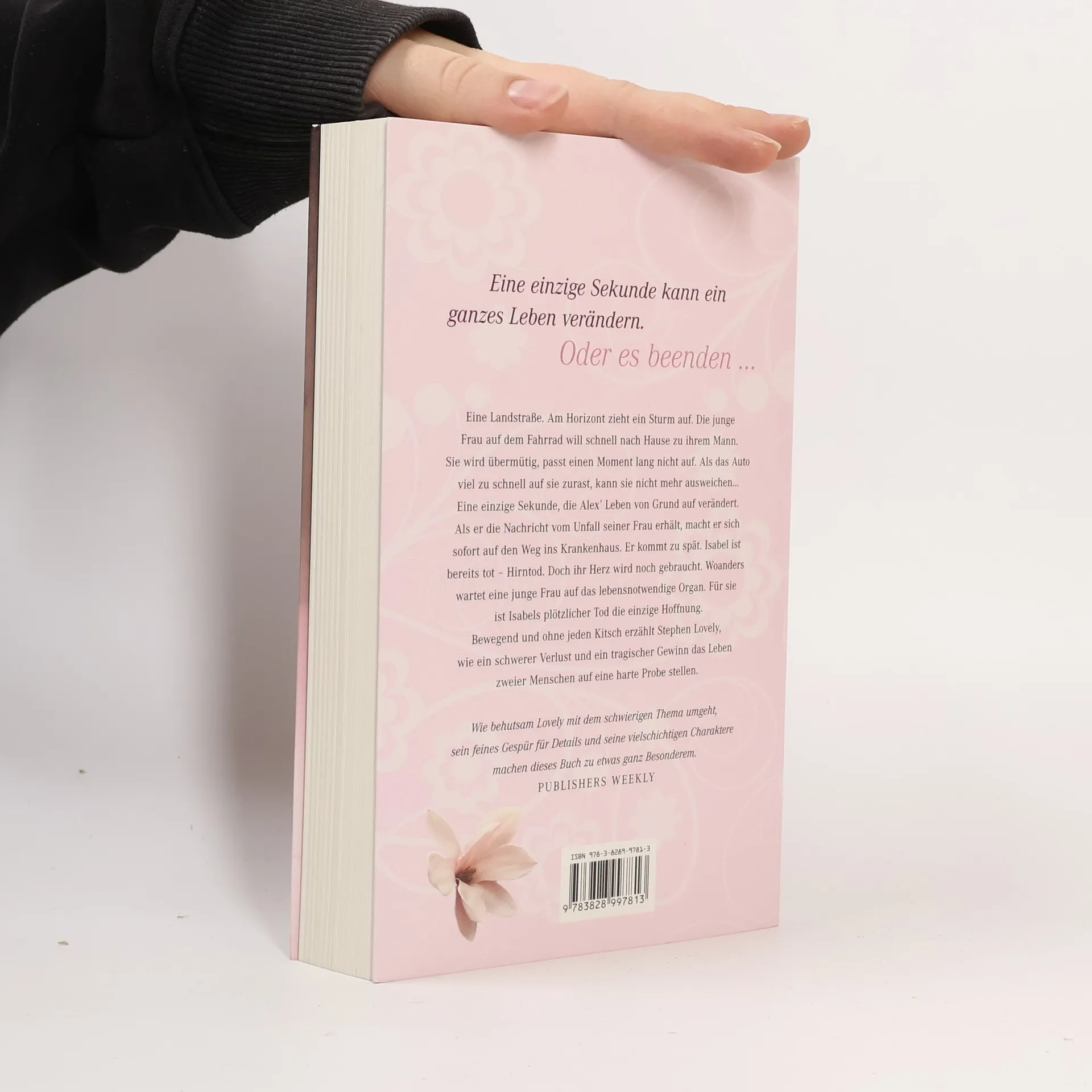 Eine Landstraße. Am Horizont zieht ein Sturm auf. Die junge Frau auf dem Fahrrad will schnell nach Hause zu ihrem Mann. Sie wird übermütig, passt einen Moment lang nicht auf. Als das Auto viel zu schnell auf sie zurast, kann sie schon nicht mehr ausweichen - Eine einzige Sekunde, die Alex’ Leben von Grund auf verändert. Als er die Nachricht vom Unfall seiner Frau erhält, macht er sich sofort auf den Weg ins Krankenhaus. Er kommt zu spät. Isabel ist bereits tot - Hirntod. Doch ihr Herz wird noch gebraucht. Woanders wartet bereits eine junge Frau auf das lebensnotwendige Organ. Für sie ist Isabels plötzlicher Tod die einzige Hoffnung - Bewegend und ohne jeden Kitsch erzählt Stephen Lovely, wie ein schwerer Verlust und ein tragischer Gewinn das Leben zweier Menschen auf eine harte Probe stellen.