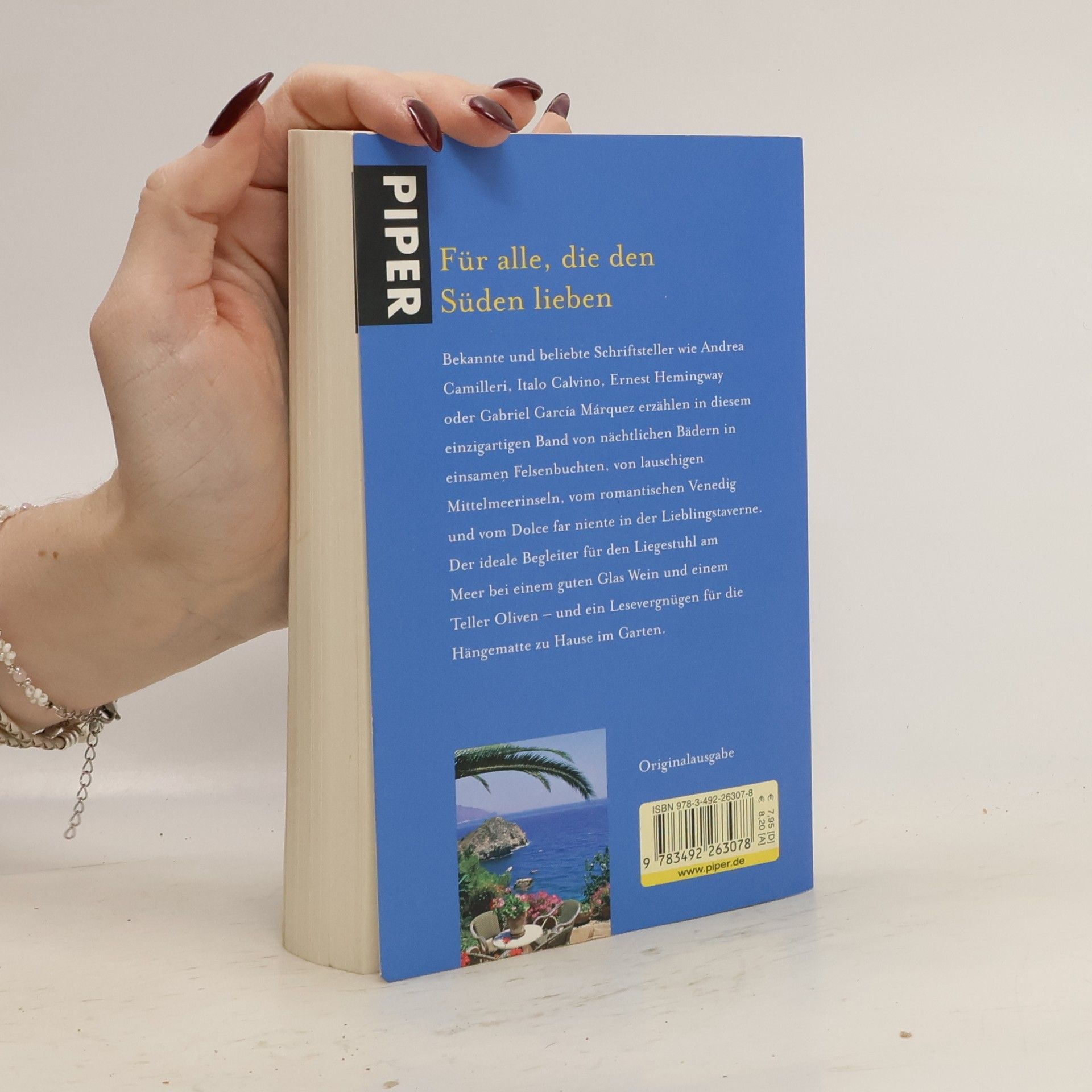 Bekannte und beliebte Schriftsteller wie Italo Calvino, Javier Marías, Antonio Tabucchi oder Ernest Hemingway und Autorinnen wie Simone de Beauvoir, Anaïs Nin, Madeleine Bourdouxhe und Zeruya Shalev erzählen von Kreuzfahrerinseln und Tempelritterburgen, von nächtlichen Bädern in einsamen Felsenbuchten, vom mondänen Monte Carlo und vom Dolce far niente in der Lieblingstaverne. Der ideale Begleiter für den Liegestuhl am Meer bei einem guten Glas Wein und einem Teller Oliven – oder für die Hängematte zu Hause im Garten.