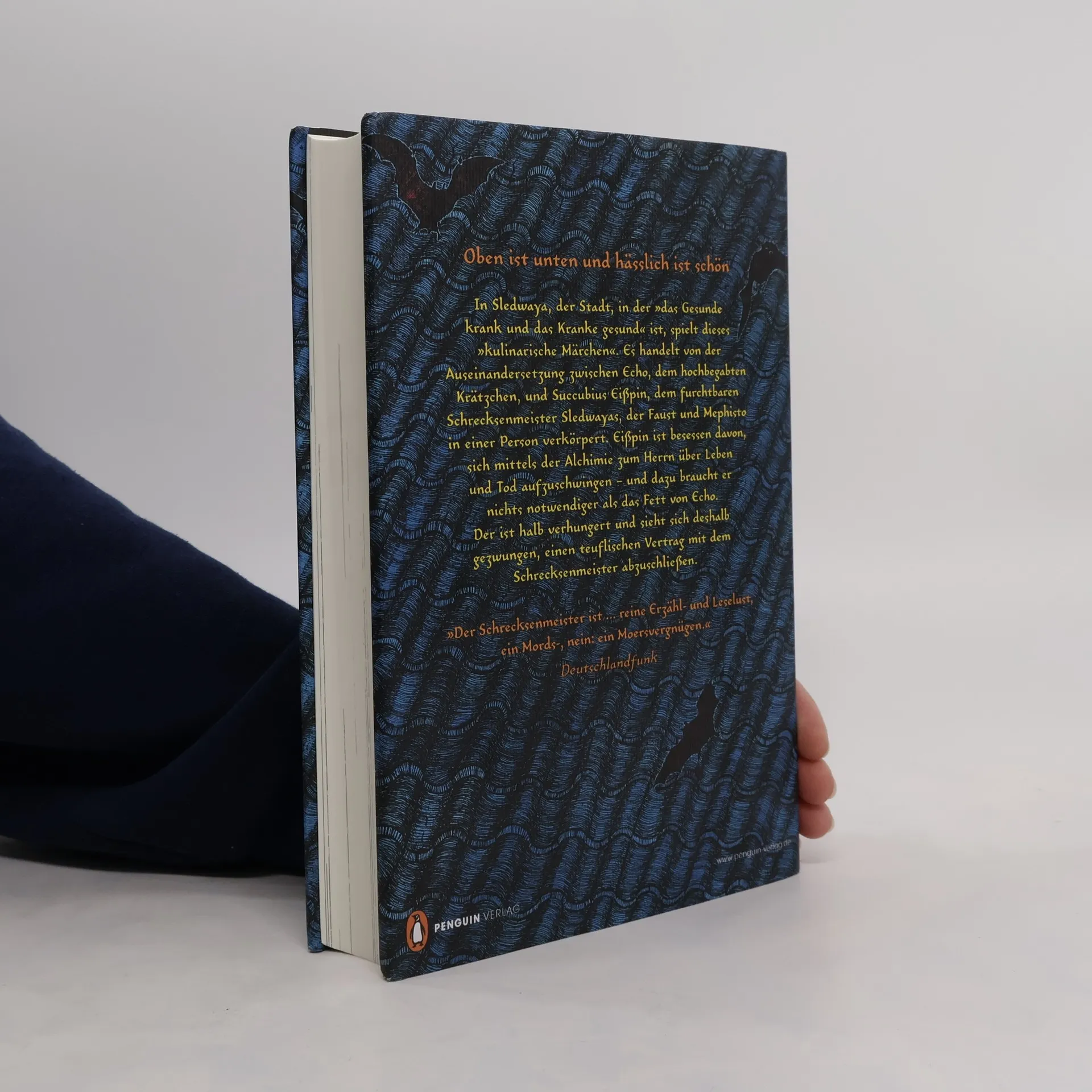 Hunger macht erfinderisch: Wie das mutige Krätzchen Echo sein eigenes Fell rettet Seltame Bakterien, Hirnhusten und Nierenverzagen, Magenmumps und Darmschnupfen halten die Stadt Sledwaya fest im Griff. Sie zwingen Echo, das Krätzchen, zu einem verzweifelten Schritt: Um nicht zu verhungern, verkauft es sein Leben an den Schrecksenmeister Eißpin. Verwöhnt auf höchstem kulinarischen Niveau, denkt sich Echo so manchen Trick aus, um sein Fett und Fell vor dem Kochtopf Eißpins zu retten. Ein faustischer Pakt und alchemistische Künste stehen im Mittelpunkt dieses Märchens aus Zamonien, mit dem sich Walter Moers einmal mehr als tollkühner Surfer auf den Meeren der Weltliteratur erweist ... Dies ist ein Roman, der im legendären Bücherreich Zamonien spielt. Folgende weitere Zamonienromane sind bislang erschienen: Die 13 1/2 Leben des Käpt'n Blaubär Ensel und Krete Rumo & Die Wunder im Dunkeln Das Labyrinth der Träumenden Bücher Prinzessin Insomnia & der alptraumfarbene Nachtmahr Weihnachten auf der Lindwurmfeste Der Bücherdrache Ausstattung: Über 100 Illustrationen