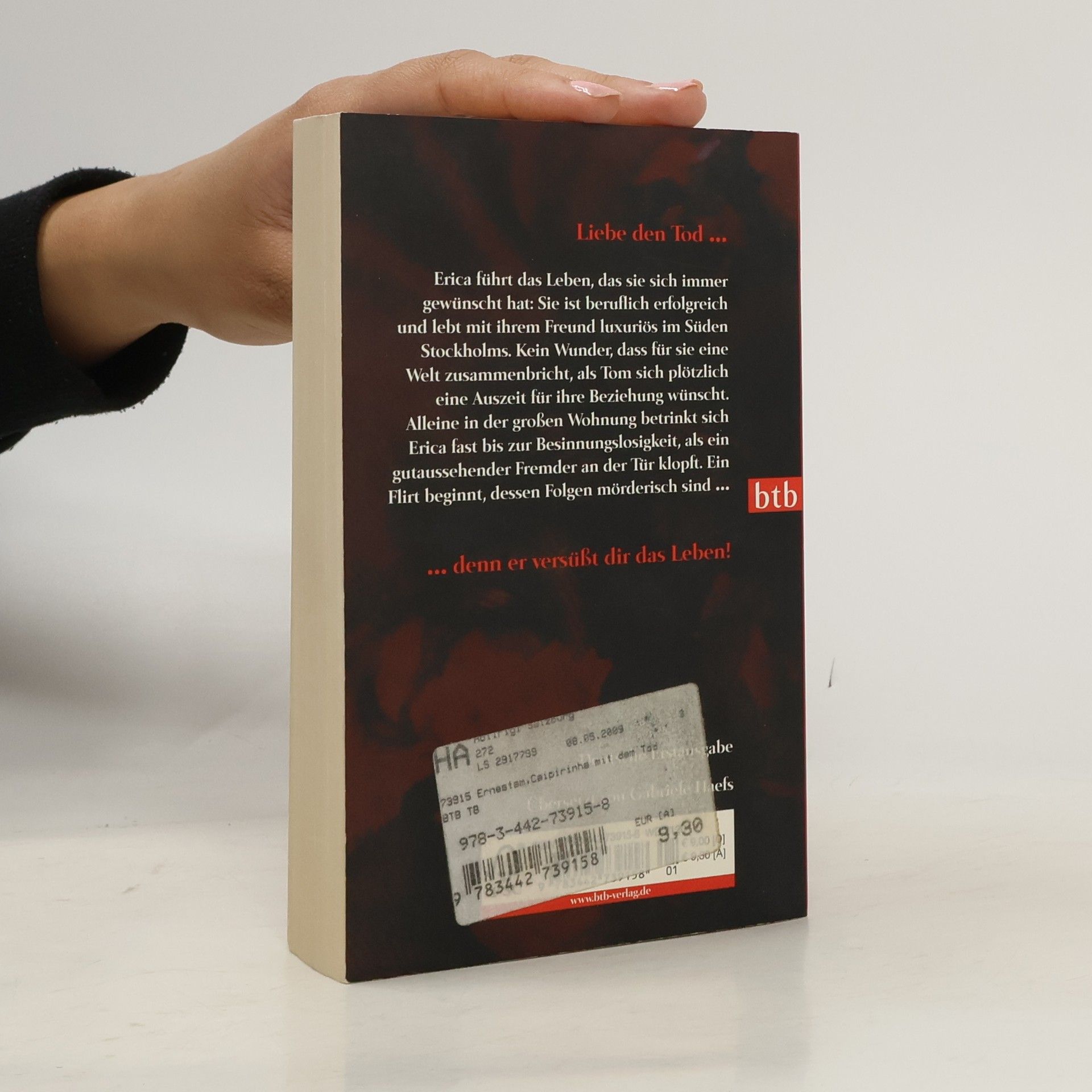 Liebe den Tod, denn er versüßt dir das Leben Erica führt das Leben, das sie sich immer gewünscht hat: Sie ist erfolgreich in der Werbebranche tätig und lebt mit ihrem Freund Tom in einem schönen Apartment im Süden Stockholms. Erica denkt langsam an Familienplanung, da eröffnet ihr Tom eines Tages, dass er eine Auszeit für ihre Beziehung wünscht. Für Erica bricht eine Welt zusammen – sie ist deshalb besinnungslos betrunken, als es abends an der Tür klopft: Angeblich ist es der Tod höchstpersönlich, der sich in der Etage geirrt hat. Ein heißer Flirt beginnt, dessen Folgen mörderisch sind …