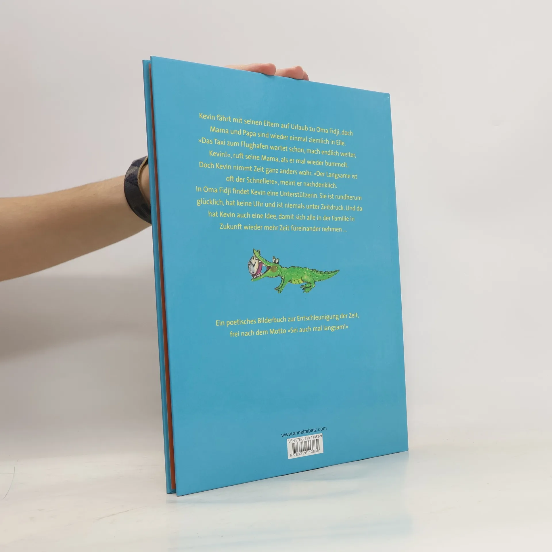 Vom Umgang mit der Zeit: Kevin fliegt mit seinen Eltern in den Urlaub zu Grossmutter Fidji. Vor dem Abflug sind die Eltern in Eile und verstehen nicht, weshalb sich Kevin nicht aus der Ruhe bringen lässt. Im Urlaub angekommen, findet Kevin in der Grossmutter eine Verbündete, sie ist auch niemals unter Zeitdruck und stimmt Kevins Philosophie "Der Langsame ist oft der Schnellere" vollständig zu. Kevin gelingt es mit einer kreativen Idee, die Eltern davon zu überzeugen, mehr Zeit füreinander zu haben. Die Hauptperson in diesem Bilderbuch regt an zum Philosophieren über die Zeit und den Umgang mit ihr. Kevin zeigt eindrücklich, wie Kinder Zeit unbekümmerter erleben und dass Erwachsene sich manchmal auch darauf einlassen können. Dieses Bilderbuch ist sprachlich und zeichnerisch auf einem einfachen Niveau und gibt damit den Kernaussagen einen grossen Stellenwert. Ab 6 Jahren, ****, Florence Ulrich Saillen.