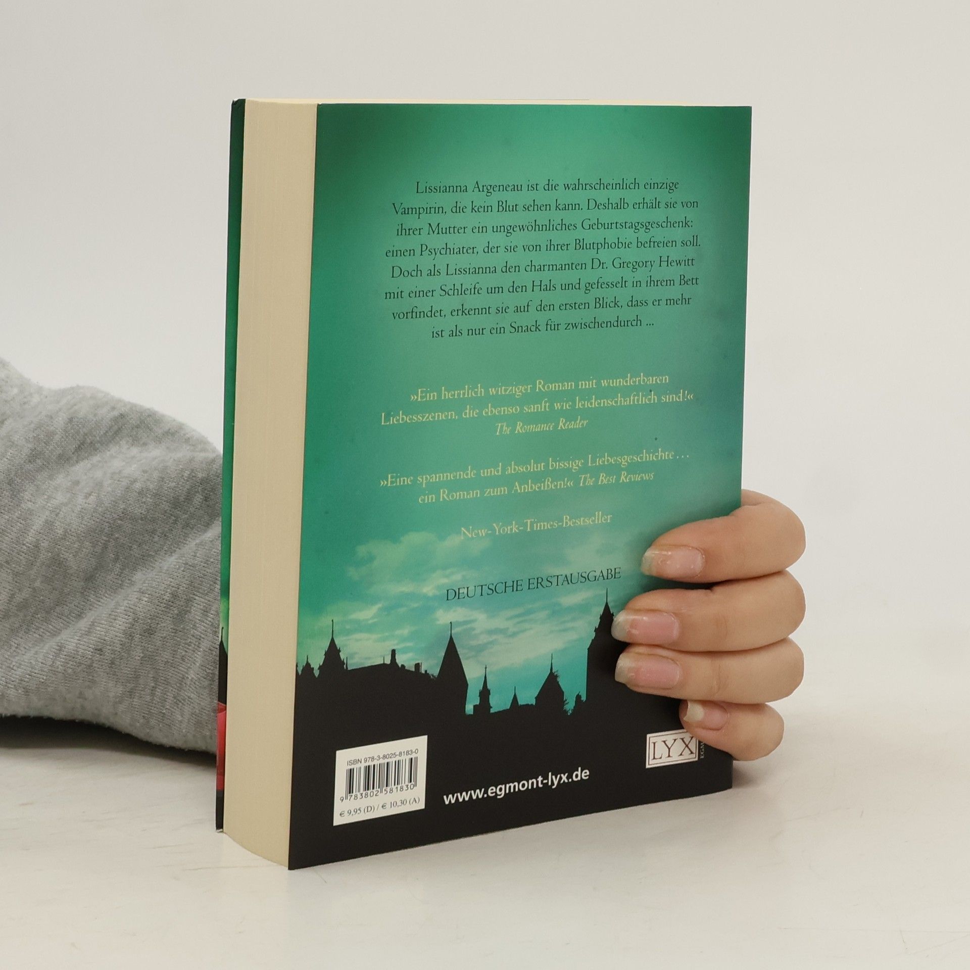 Lissianna Argeneau ist wohl die einzige Vampirin, die kein Blut sehen kann. Ihre Mutter macht ihr deshalb zum dreißigsten Geburtstag ein ungewöhnliches Geschenk: einen Psychiater, der sie von ihrer Blutphobie befreien soll. Doch als Lissianna den gut aussehenden und charmanten Dr. Gregory Hewitt an ihr Bett gefesselt vorfindet, wird ihr auf den ersten Blick klar, dass er mehr ist als nur ein schneller Snack für zwischendurch. Könnte er womöglich gar der richtige Mann fürs Leben sein, auf den Lissianna schon so lange wartet? Doch um ihn in einen Vampir verwandeln zu können, muss Lissianna erst ihre Abscheu gegen Blut überwinden ... „Wer Vampir-Storys, ob modern oder klassisch, liebt, sollte sich diesen Roman um nichts auf der Welt entgehen lassen. Spannend, fesselnd, actionreich und romantisch - alles, was ein gutes Buch braucht.“ Phantastik-Couch. de