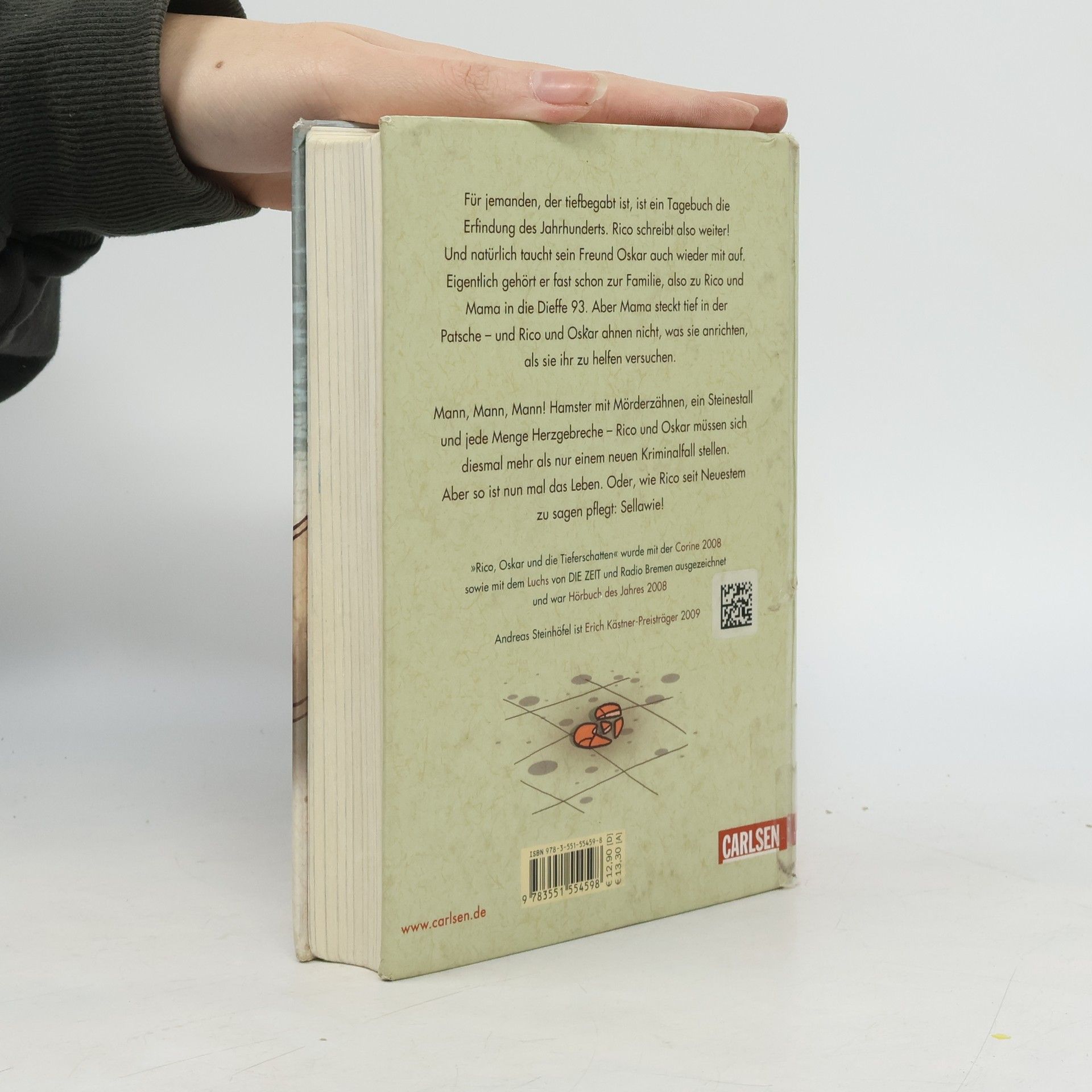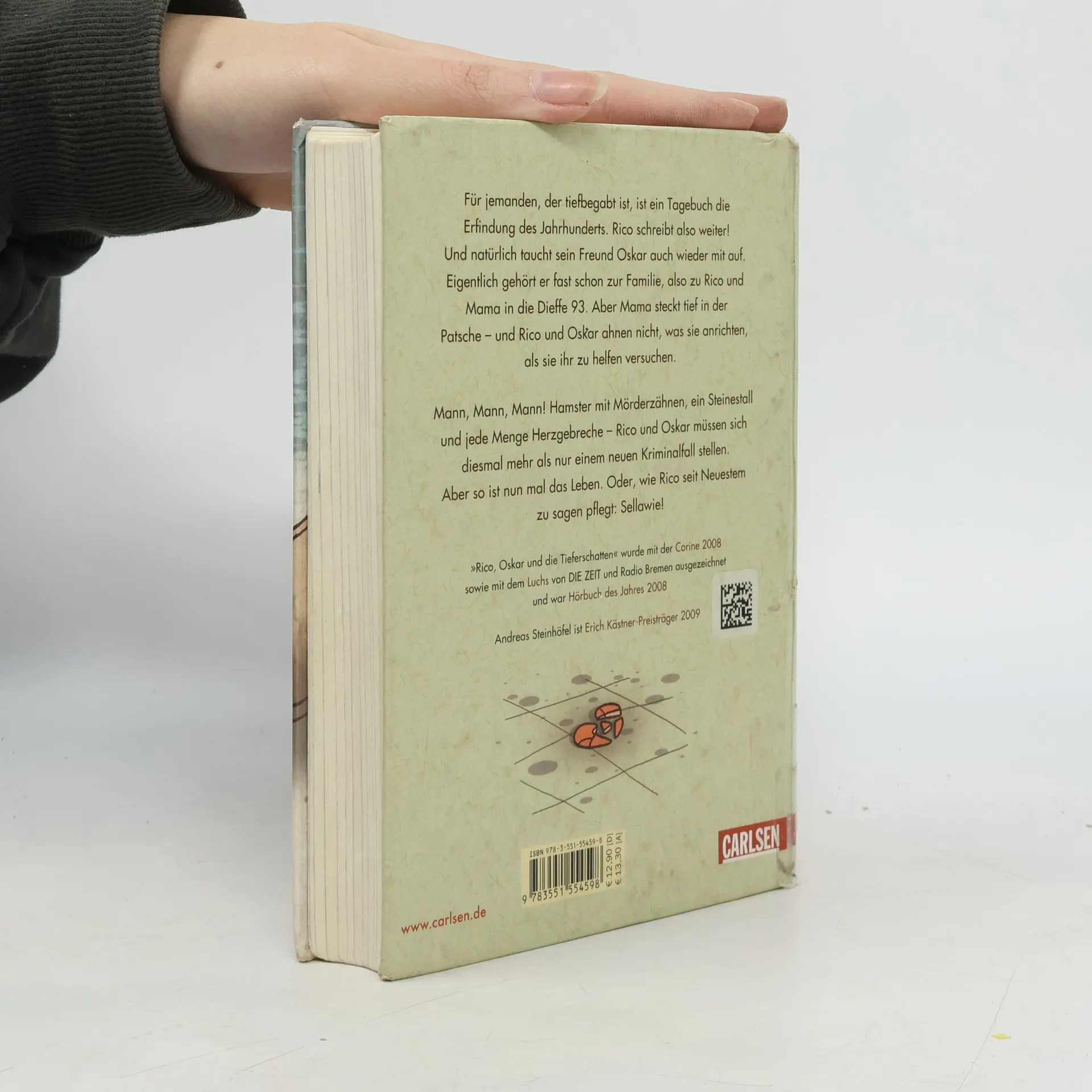 „Für jemanden, der tiefbegabt ist und ins Förderzentrum geht, weil er einen Kopf wie eine Bingotrommel hat, ist ein Tagebuch die Erfindung des Jahrhunderts.“ Rico ist wieder da! Und natürlich ist sein Freund Oskar mit von der Partie. Eigentlich gehört er praktisch schon zur Familie, also zu Mama und Rico in die Dieffe 93. Aber diesmal trägt Oskar keinen Helm, schließlich sind die beiden Freunde inkognito unterwegs. Handtaschen, Hamster mit Mörderzähnen und jede Menge Herzgebreche - Rico und Oskar müssen sich nicht nur kriminalistischen Herausforderungen stellen. Mann, Mann, Mann. Aber wie Rico so schön erklärt: Sellawie. Alle Bücher über Rico und Oskar:Rico, Oskar und der Diebstahlstein Rico, Oskar und das Herzgebreche Rico, Oskar und die TieferschattenRico, Oskar und das Vomhimmelhoch Kindercomics:Rico & Oskar – Fische aus Silber Rico & Oskar – Die RegenhütteRico & Oskar – Die perfekte ArschbombeRico & Oskar – Die Sache mit den Öhrchen