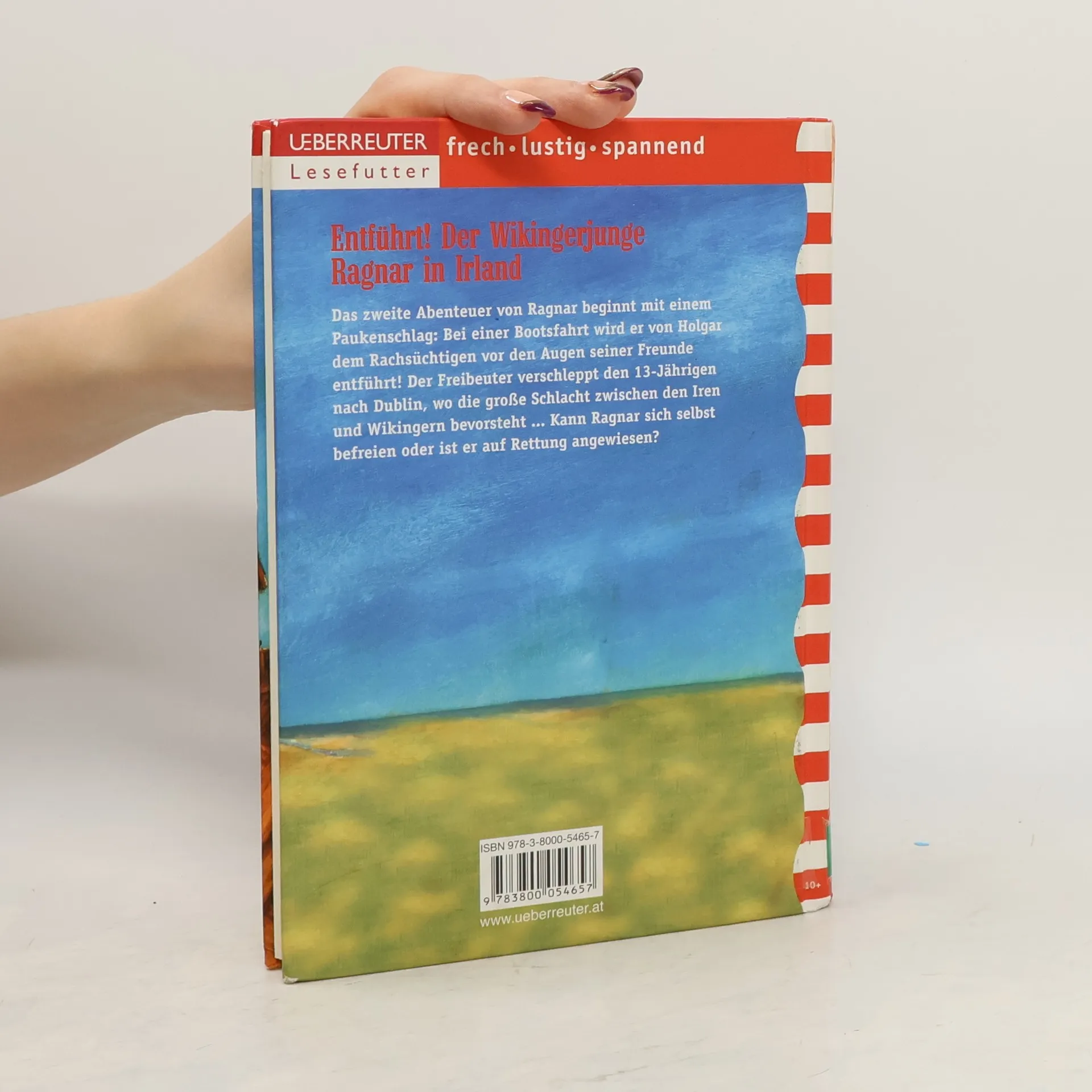 Entführt! Der Wikingerjunge Ragnar in Irland Das zweite Abenteuer von Ragnar beginnt mit einem Paukenschlag: Bei einer Bootsfahrt wird er von Holgar dem Rachsüchtigen vor den Augen seiner Freunde entführt! Der Freibeuter verschleppt den 13-Jährigen nach Dublin, wo die große Schlacht zwischen den Iren und Wikingern bevorsteht. Kann Ragnar sich selbst befreien oder ist er auf Rettung angewiesen?