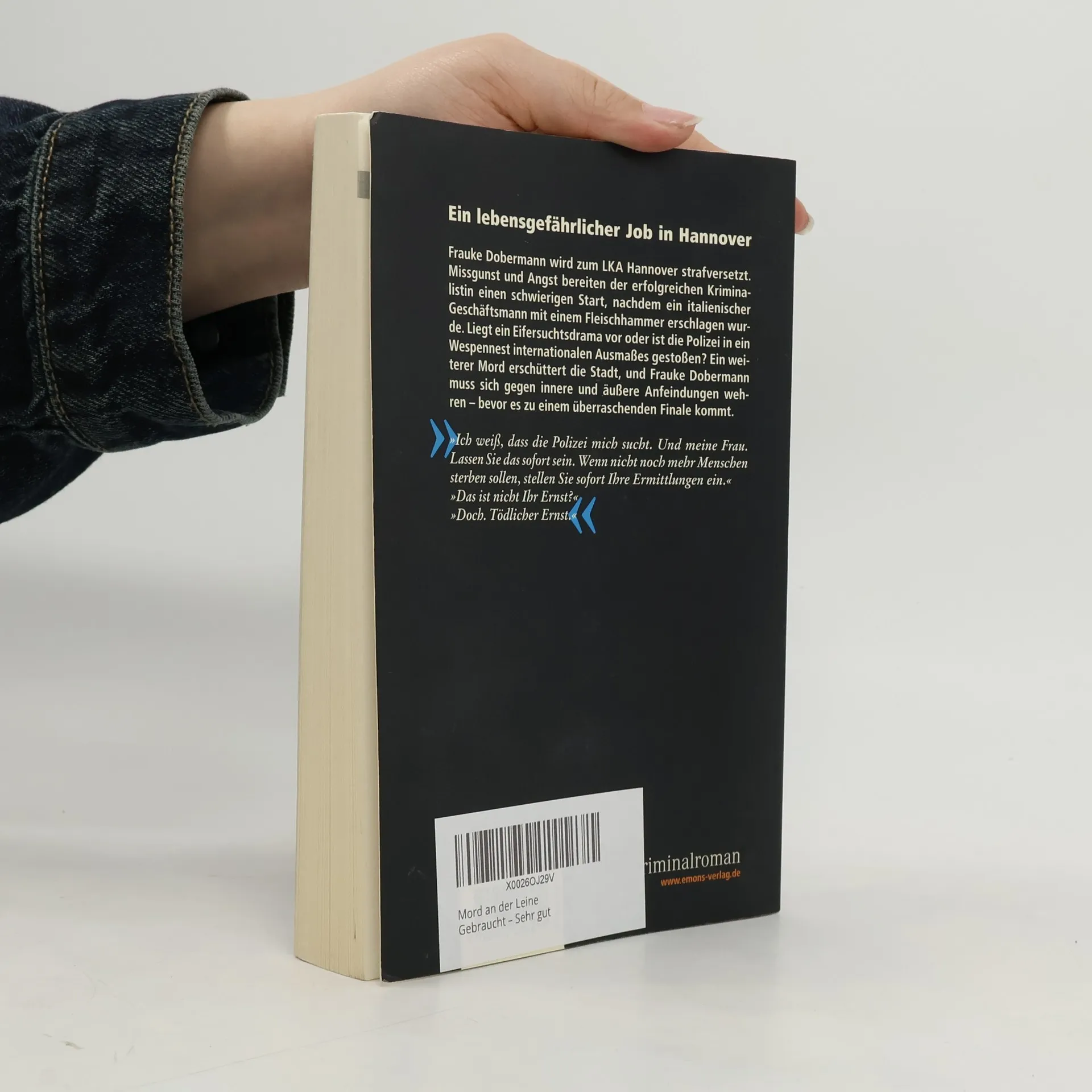 Frauke Dobermann wird zum LKA Hannover strafversetzt. Missgunst und Angst bereiten der erfolgreichen Kriminalistin einen schwierigen Start, nachdem ein italienischer Geschäftsmann mit einem Fleischhammer erschlagen wurde. Liegt ein Eifersuchtsdrama vor oder sind die Polizisten in ein Wespennest internationalen Ausmaßes gestoßen? Ein weiterer brutaler Mord erschüttert die Polizei, und Frauke Dobermann muss sich gegen innere und äußere Anfeindungen wehren, bevor es zum überraschenden Finale kommt.
